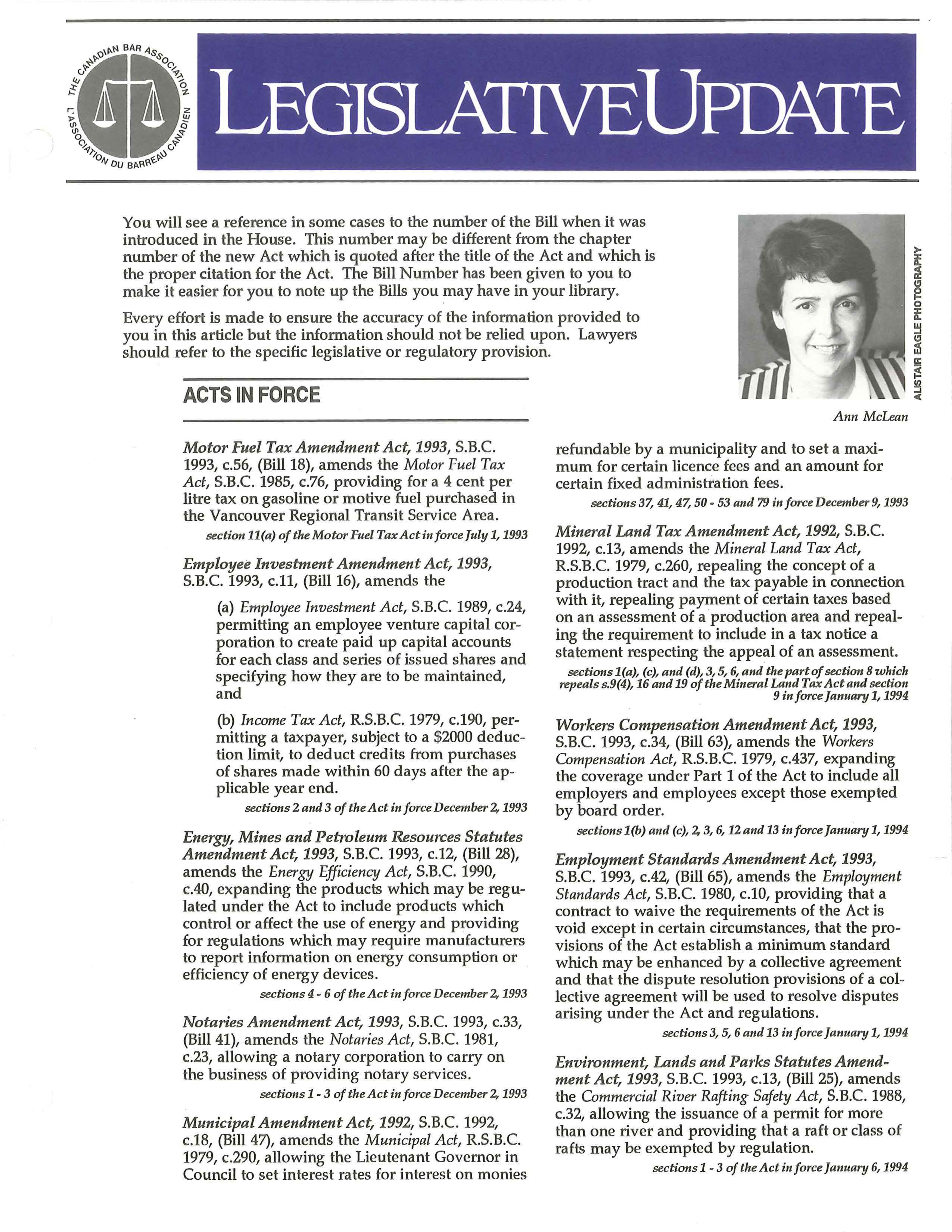 ]. Parker MacCarthy CBA (B.C. Branch) President 1993/94