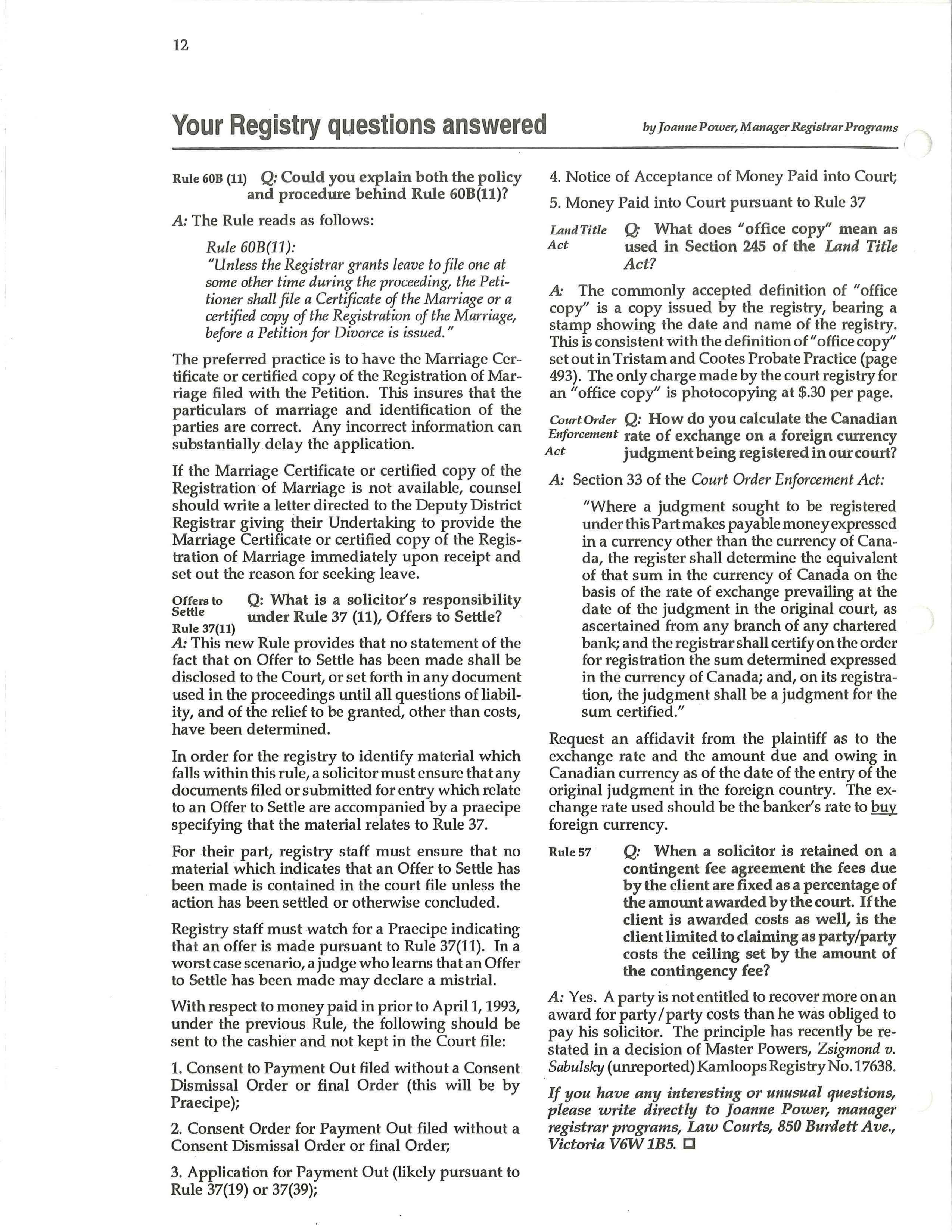 Local Law Day Planning Committees are at work in over 15 other communities in B.C. and are planning similar activities. If you are interested in finding out what programs are being developed in your community or would like to volunteer for Law Week activities, please call the B.C. Branch at 687-3404 for further information. []