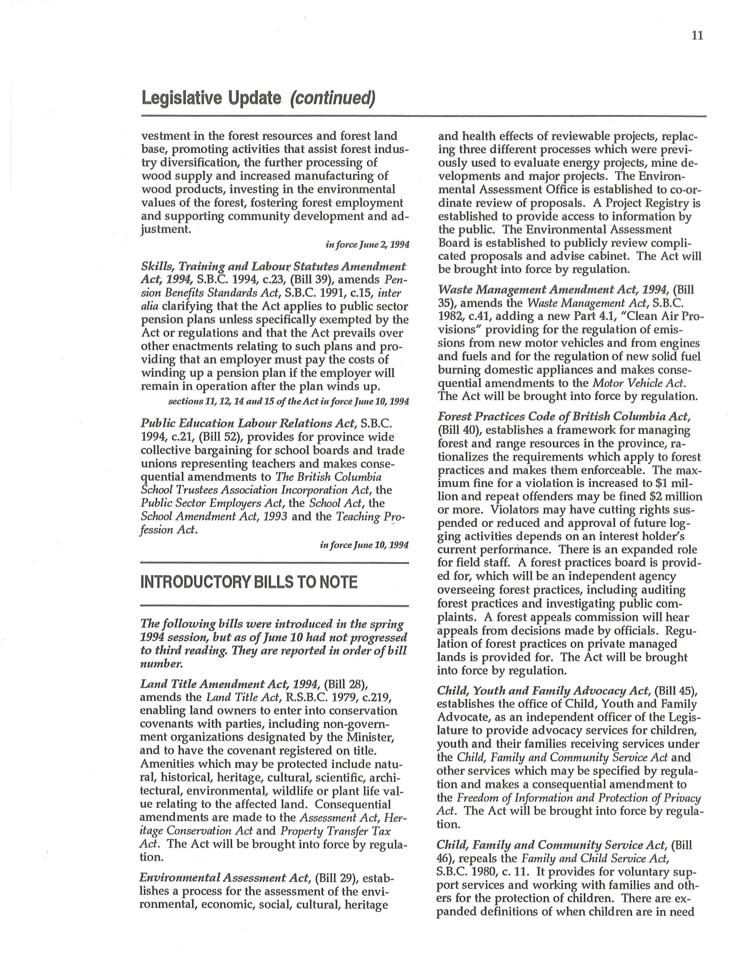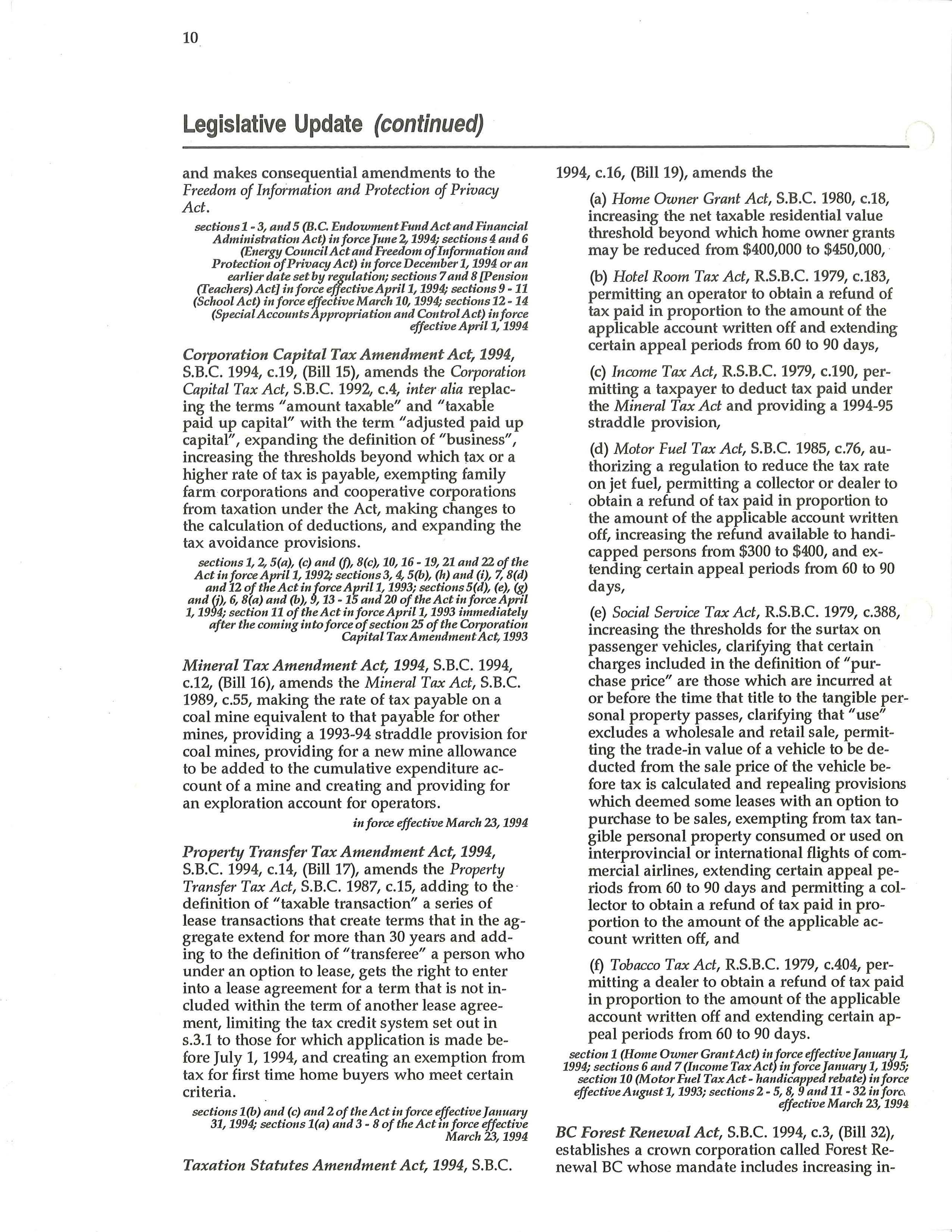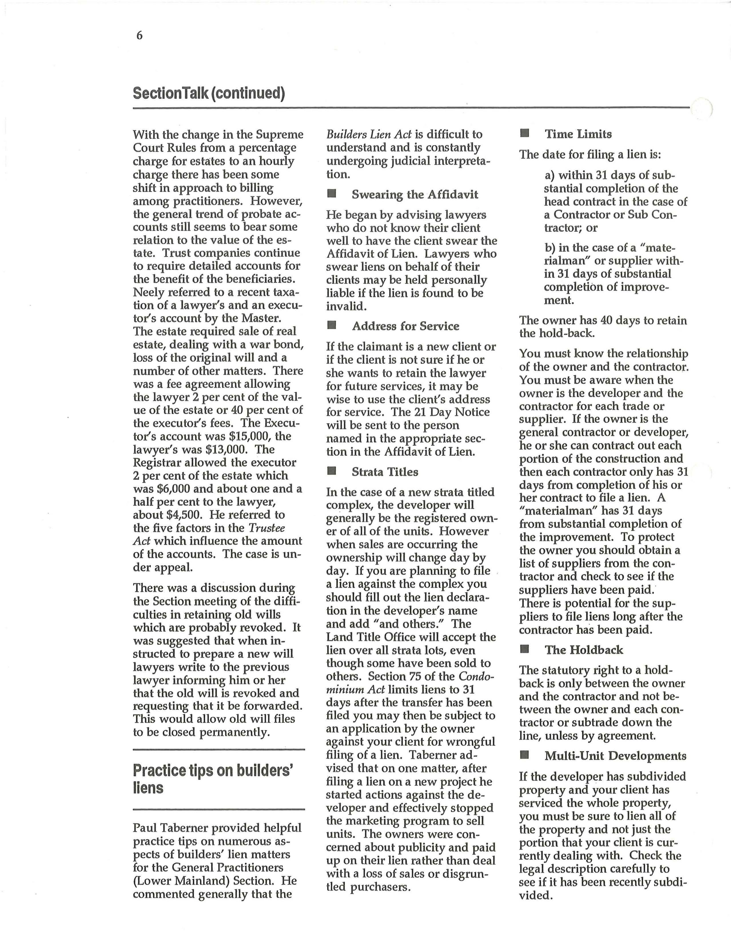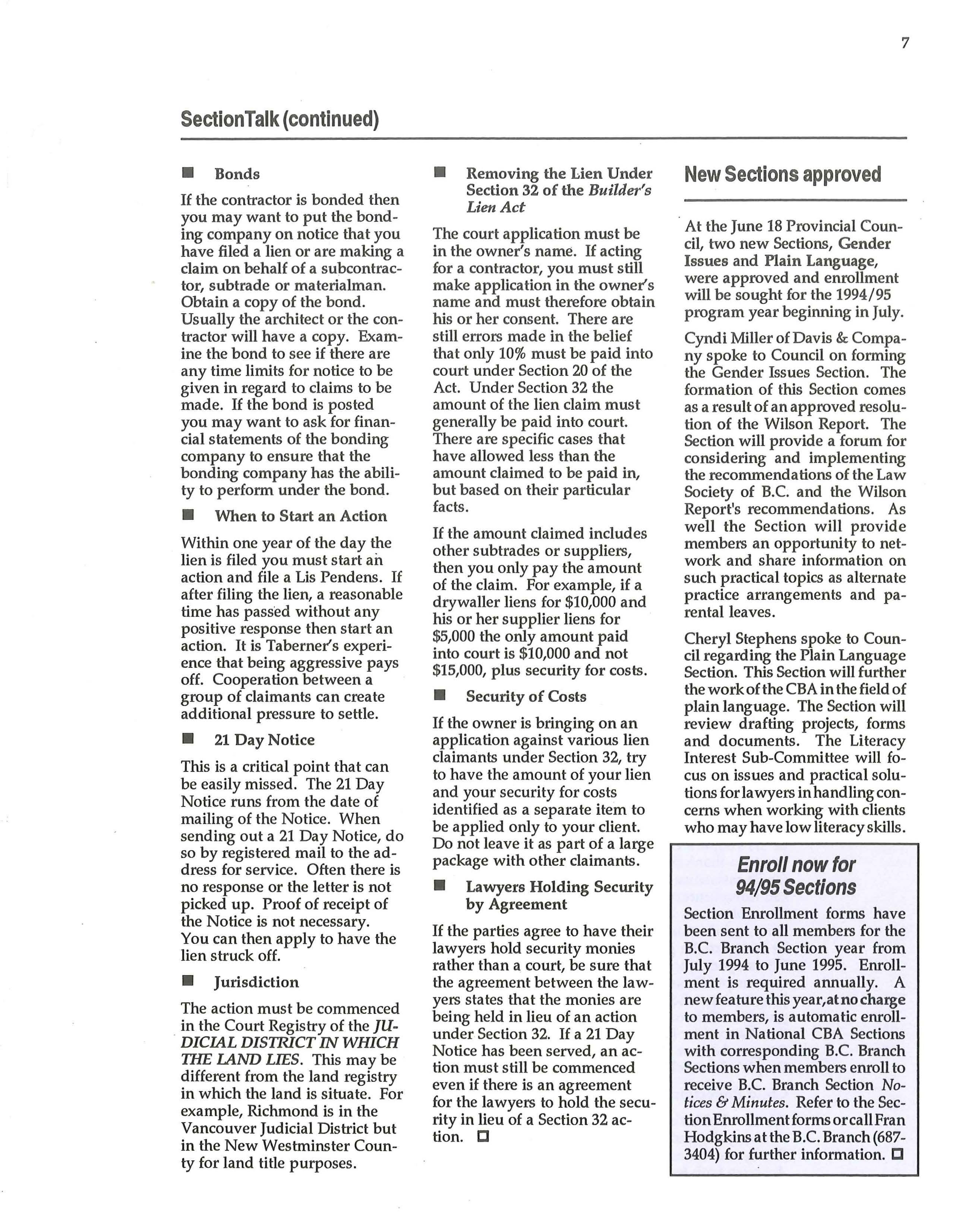 BarTalk is published by the British Columbia Branch of the Canadian Bar Association, lOth Floor - 845 Cambie Street Vancouver, B.C. V6B 5T3 Tel: (604) 687-3404 FAX: 669-9601