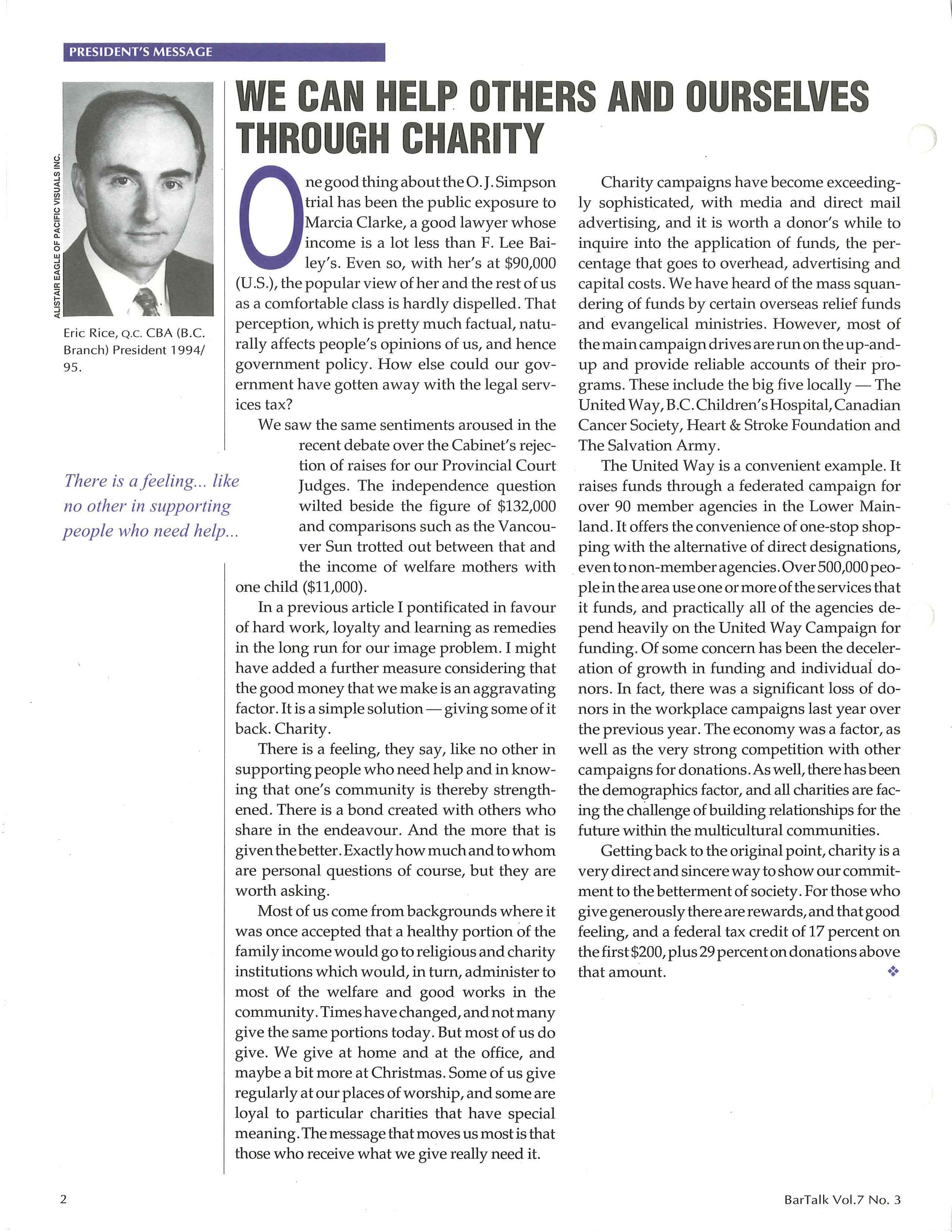 Eric Rice, Q.c. CBA (B.C. Branch) Pre sident 1994/ 95.