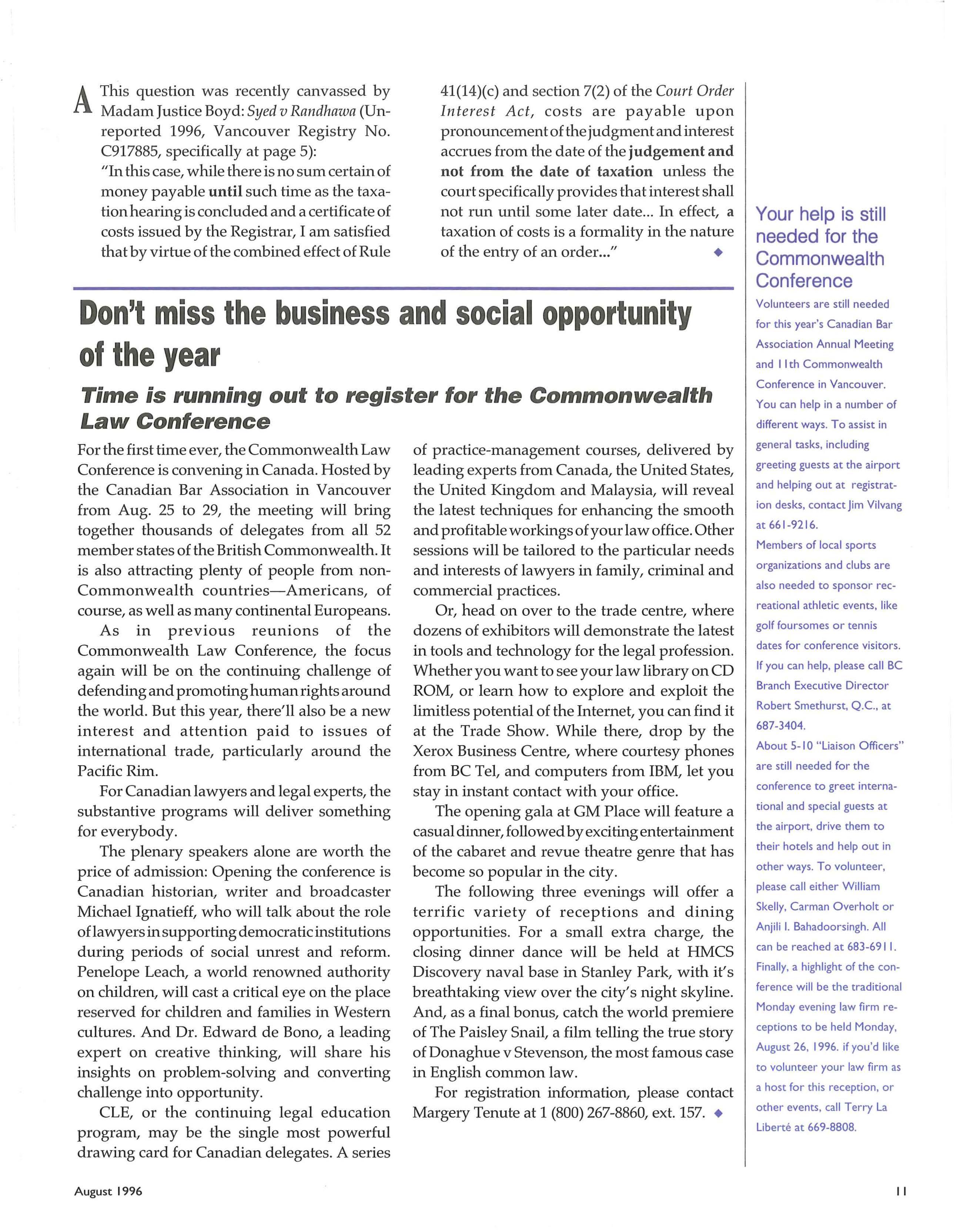 @ Copyright the British Columbia Branch of the Canadian Bar Assoclatlon--1996.