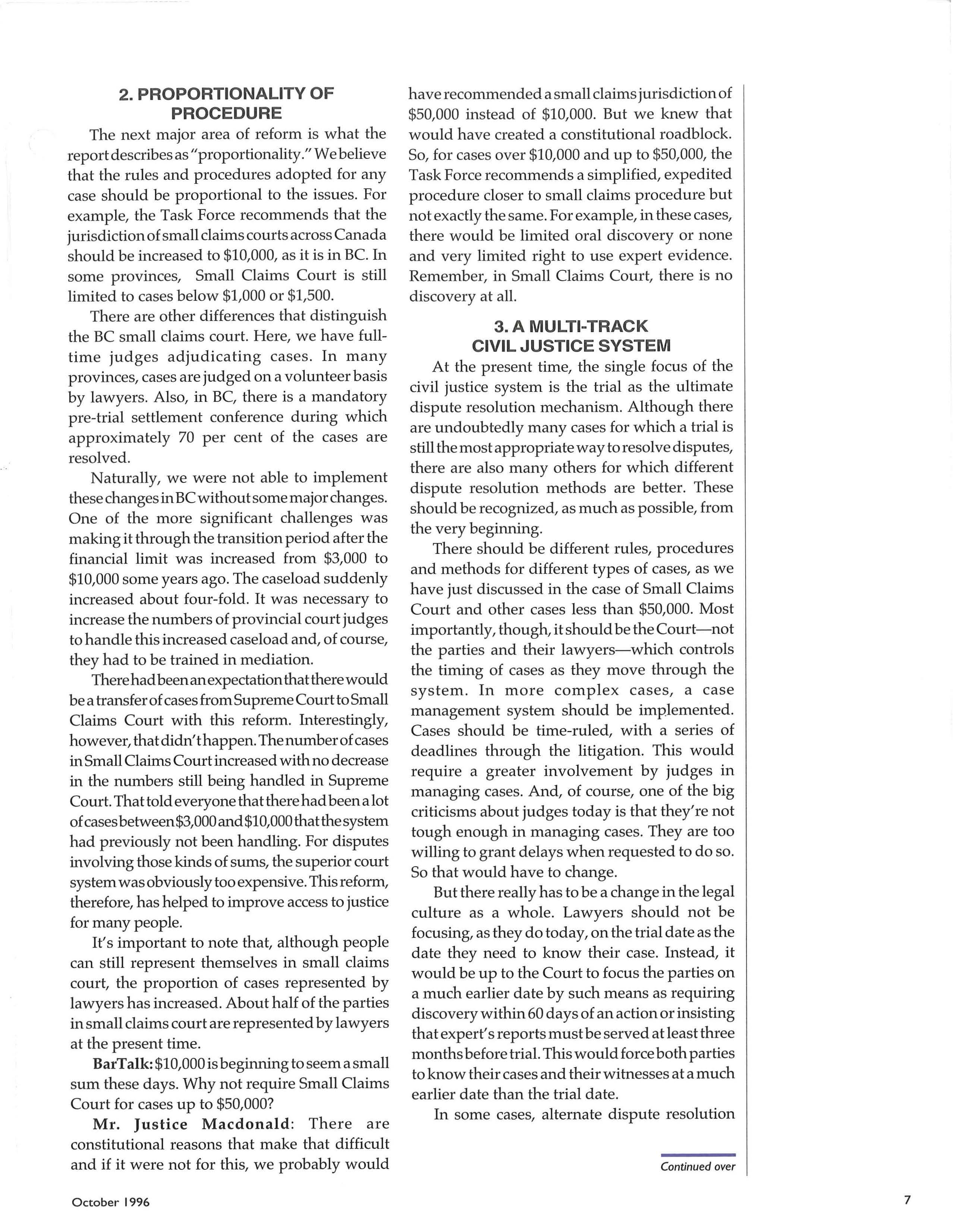 The hard-working members of this Task Forc e consulted broadl y with members of the profe ss ion, the cou r t sys tem, and the public and learned that just about everyone is concerned about the length of time many ca s es take and th e cost of contesting tho se cases Much of the concern centre s around the affordability of res ol v ing civil di s pute s, particularl y when the amount at is s u e is low . Here is what the report had to s ay about that: