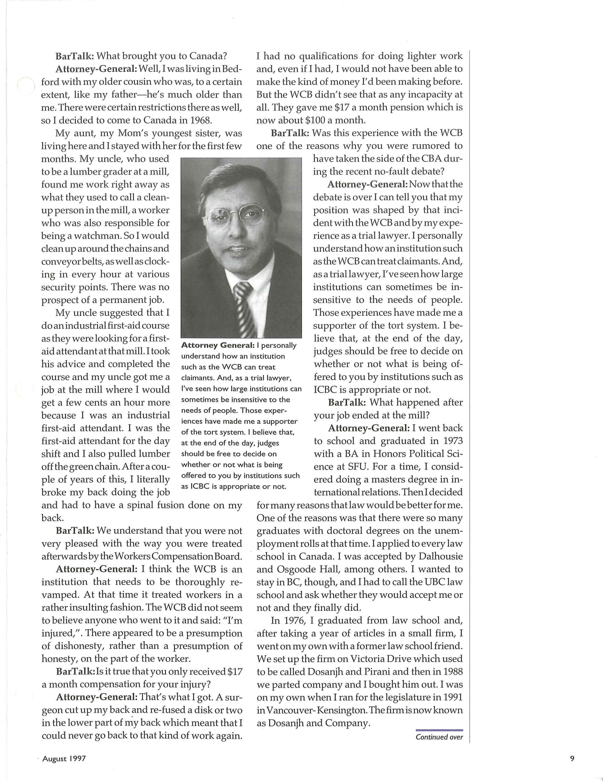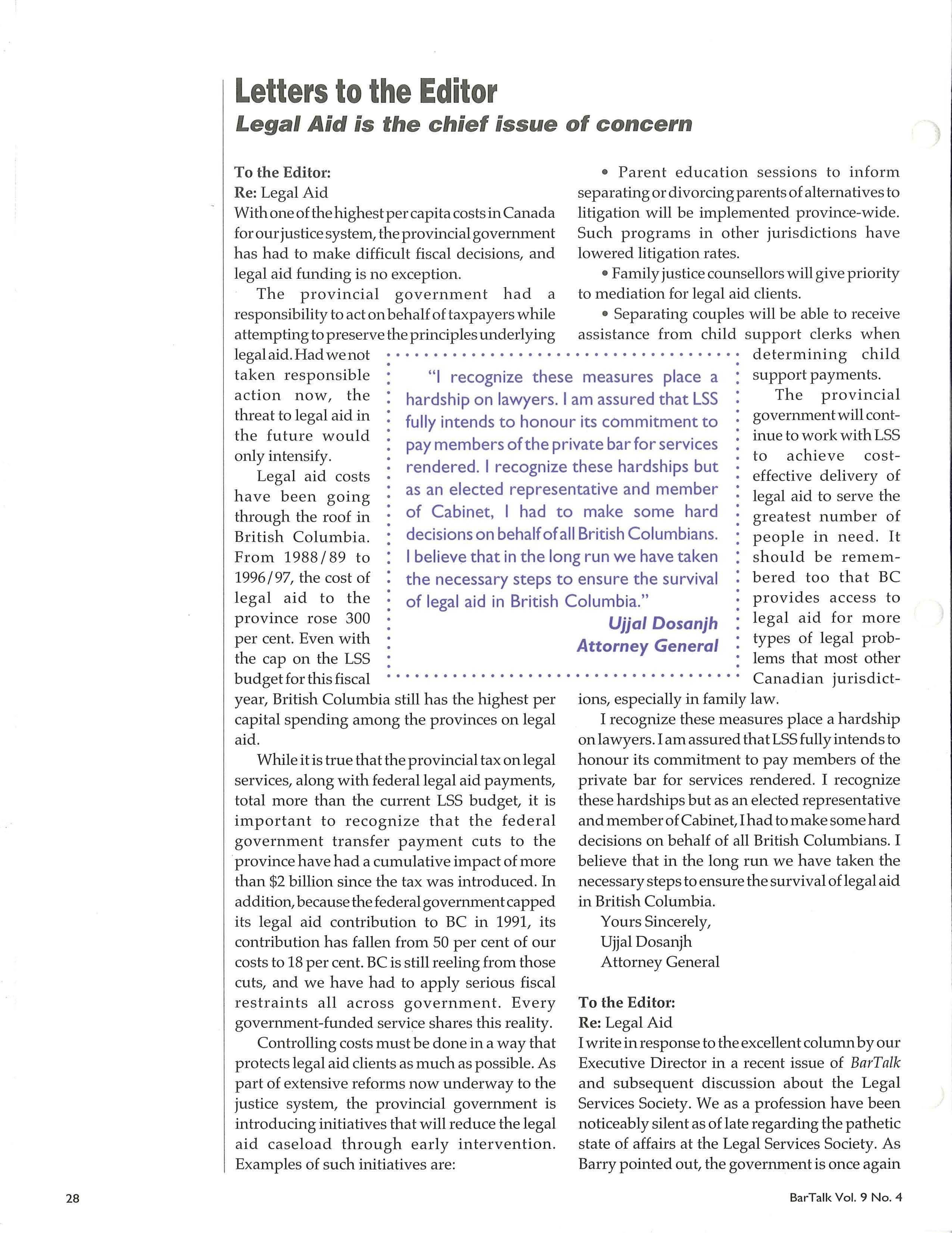 As well, Dosanjh said the legislation had al so been made necessary by a recent auditor general's management review of the Legal Services Society.