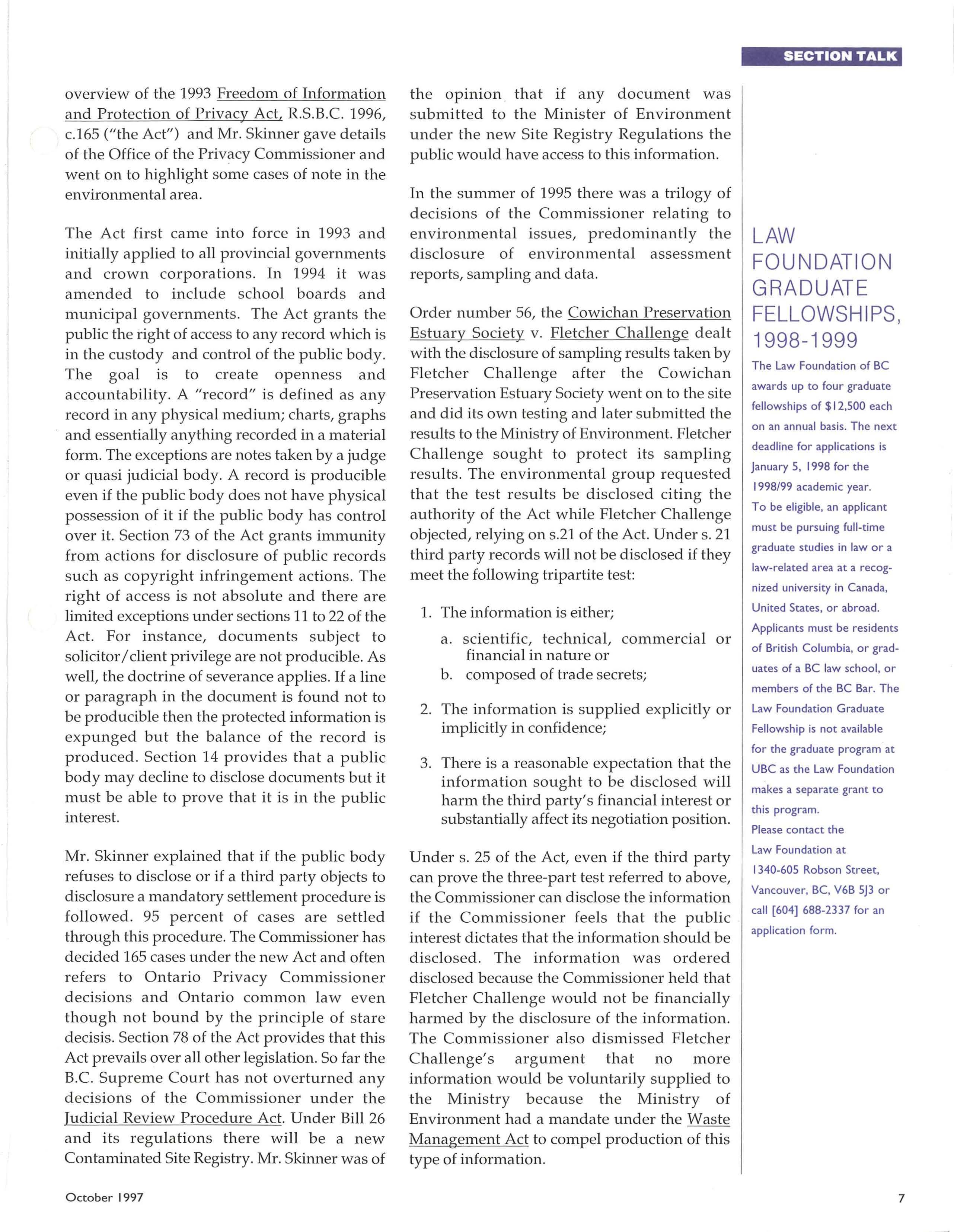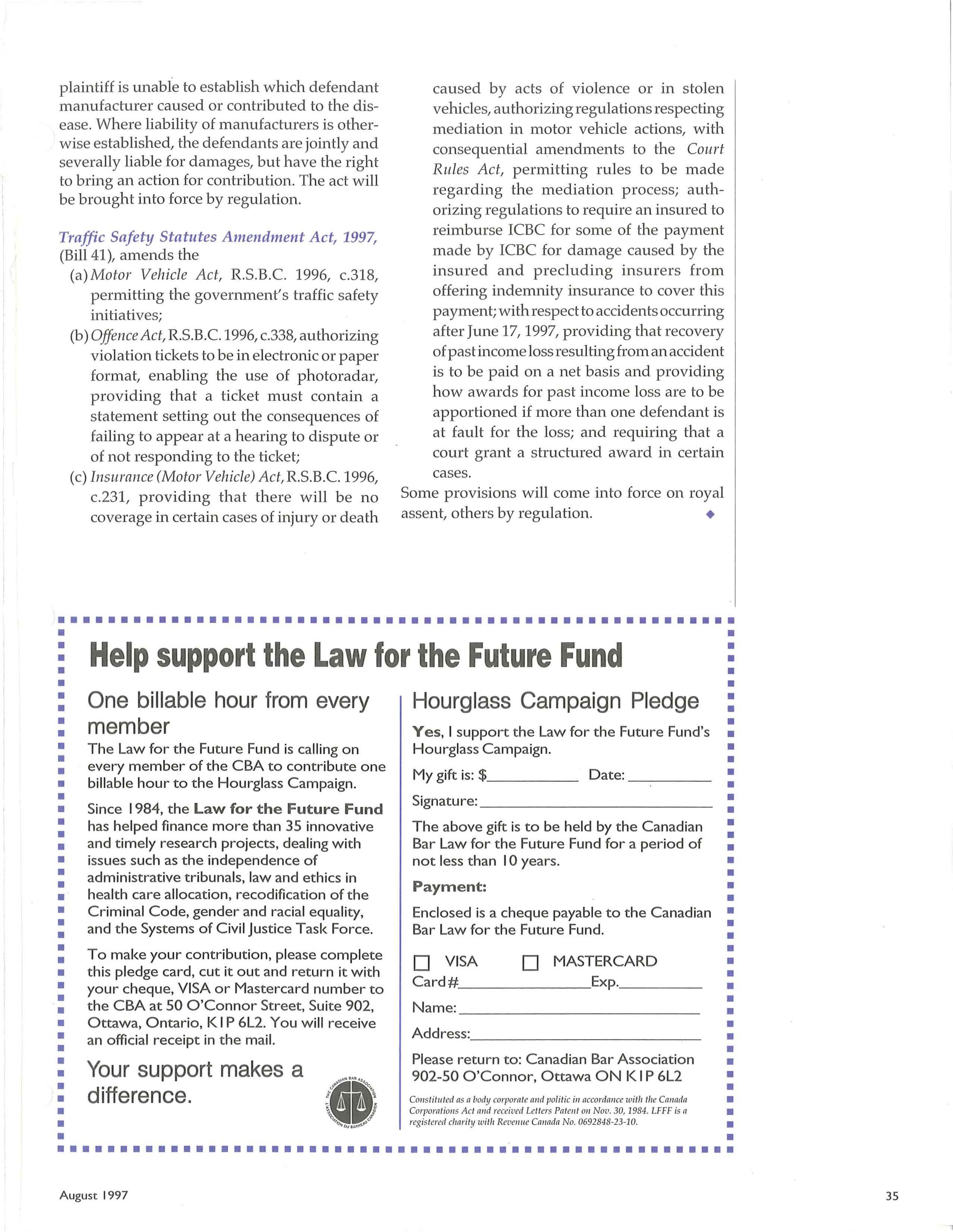 Enclosed is a cheque payable to the Canadian Bar Law for the Future Fund.