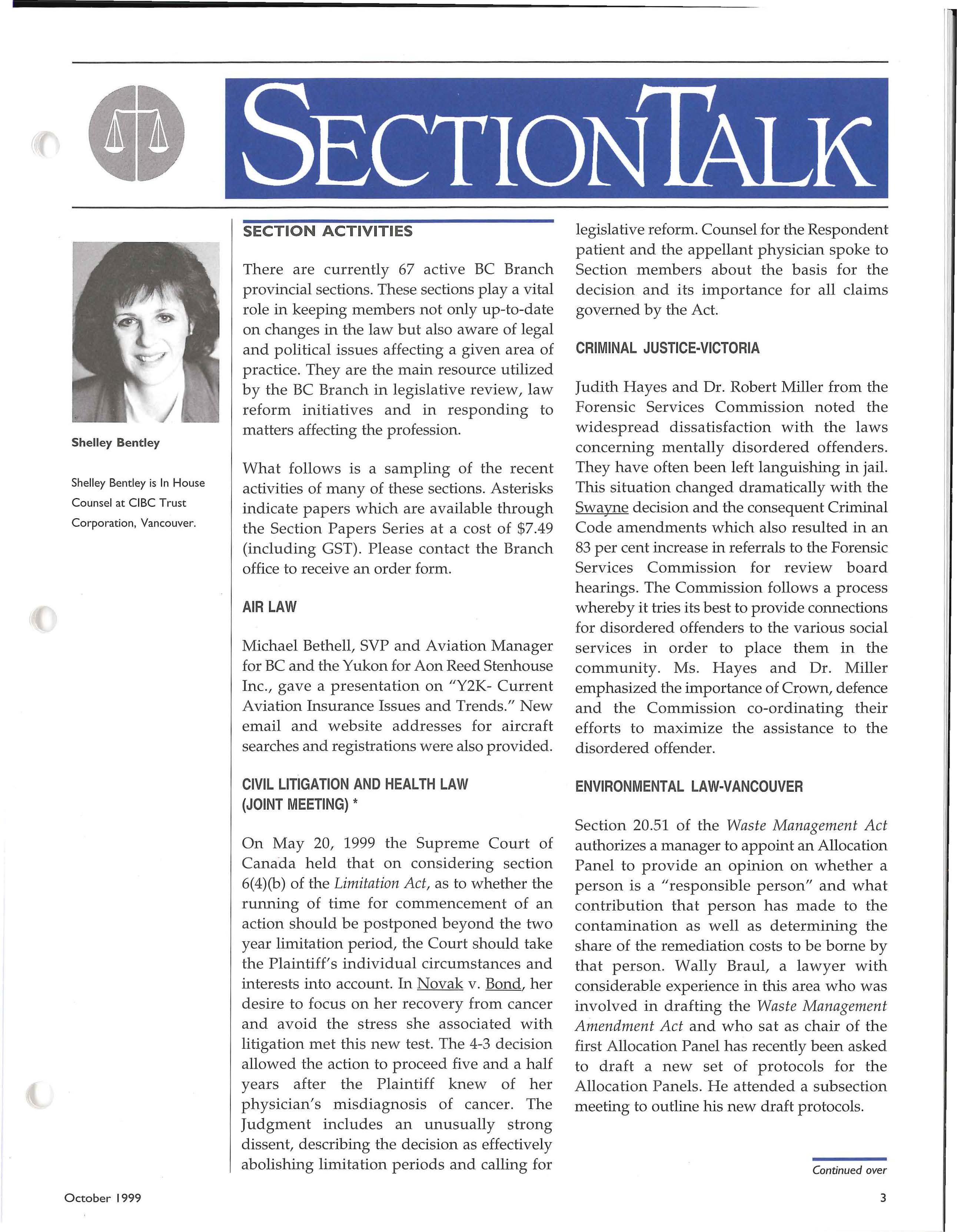 She ll ey Bent ley is In House Counsel at C IBC T rust Corporation, Vancouver.