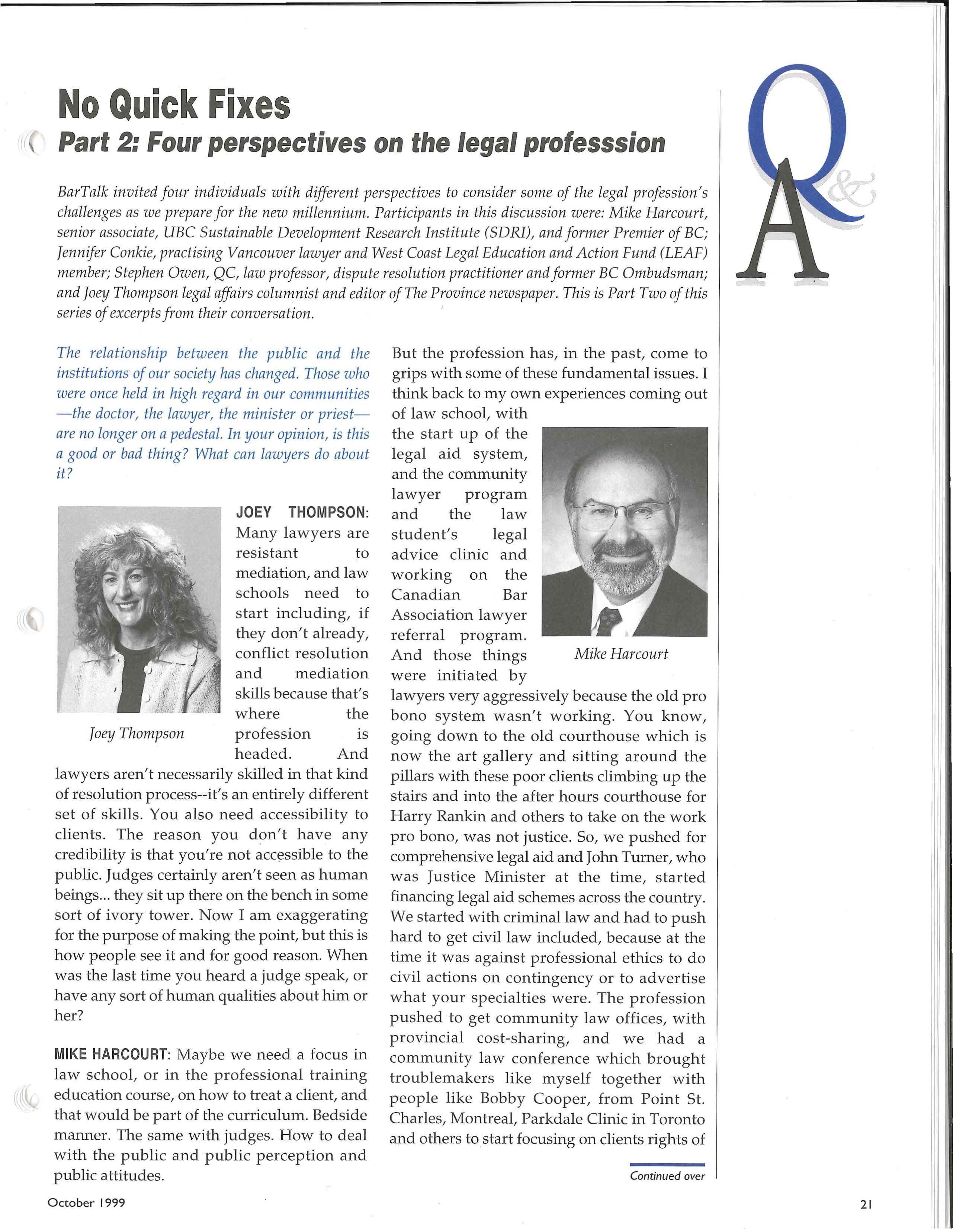 MIKE HARCOURT: Even if that is the fear, you can have someone at the law school, or somebody who is disinterested, who has nothing to lose, commenting.