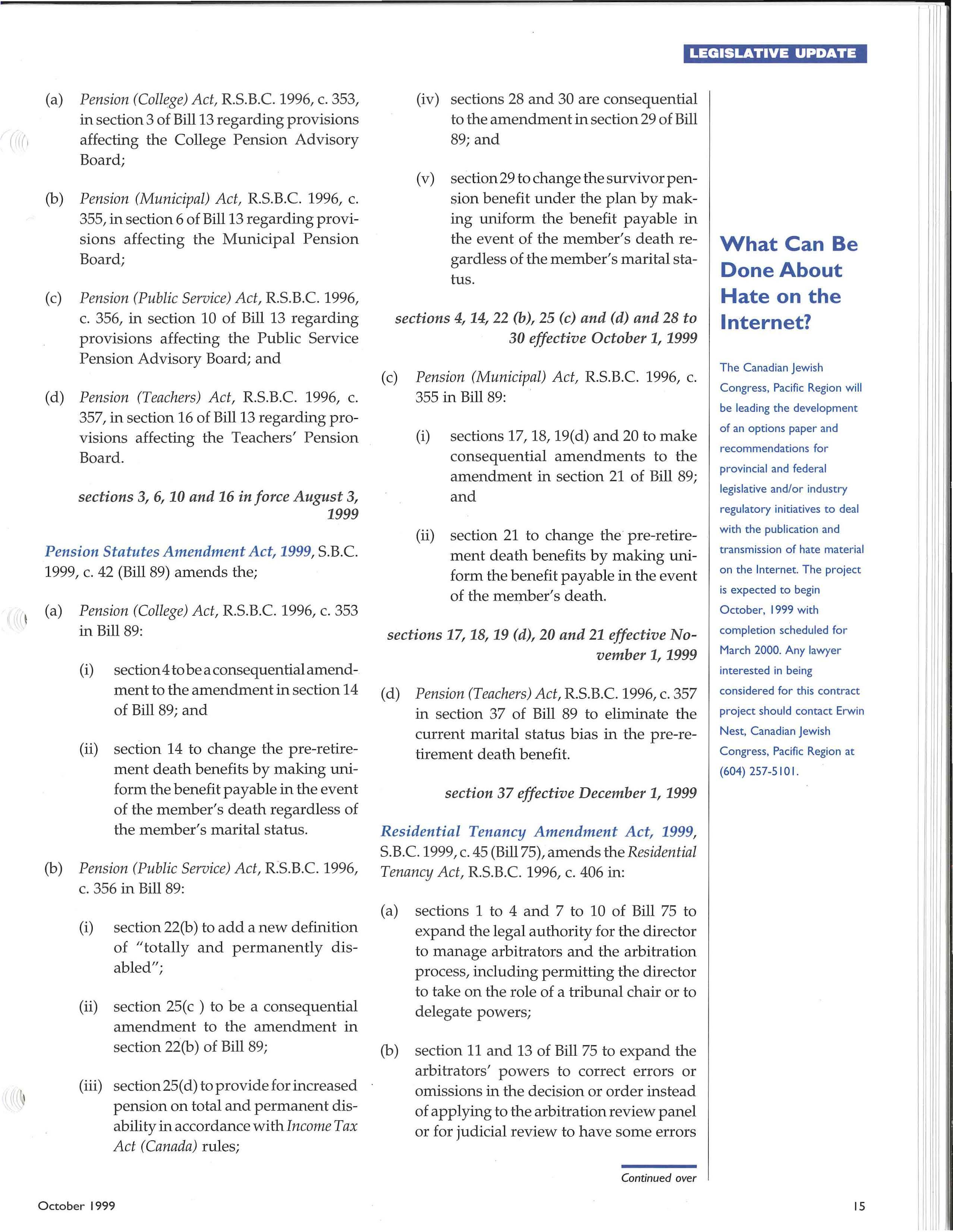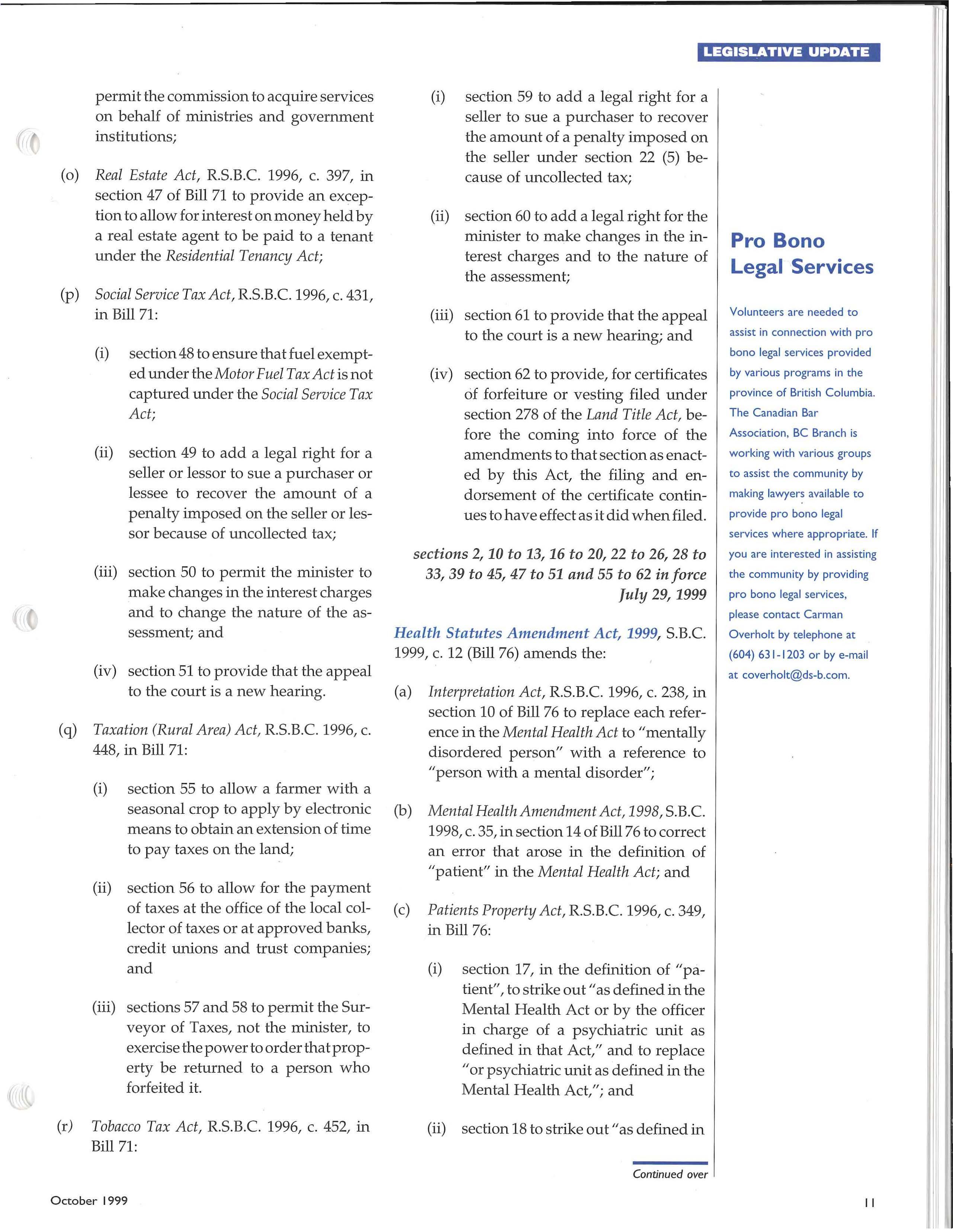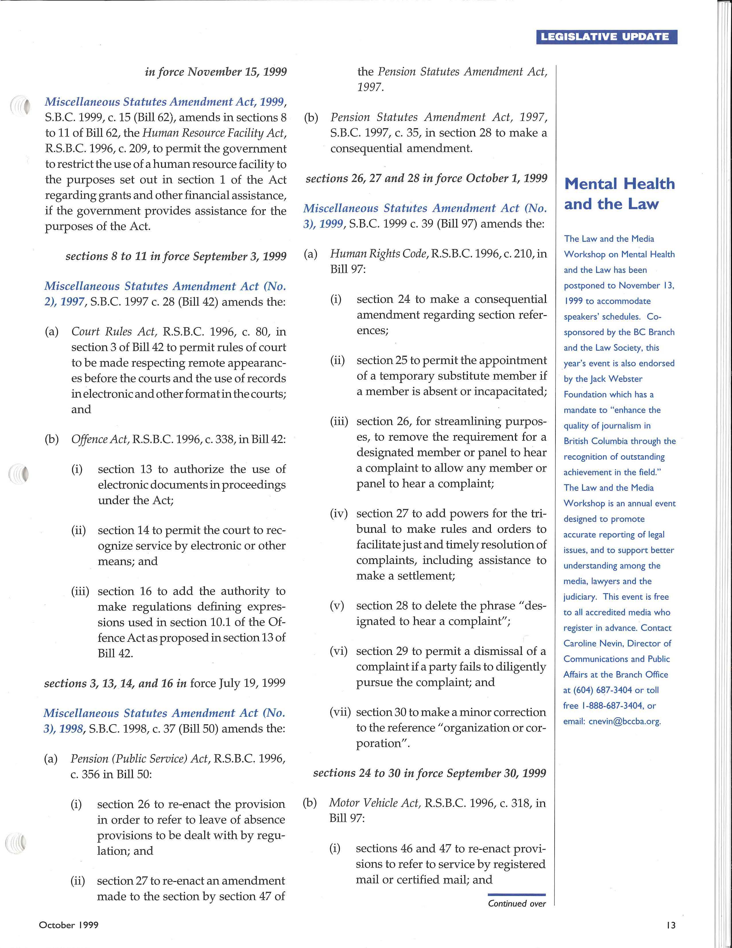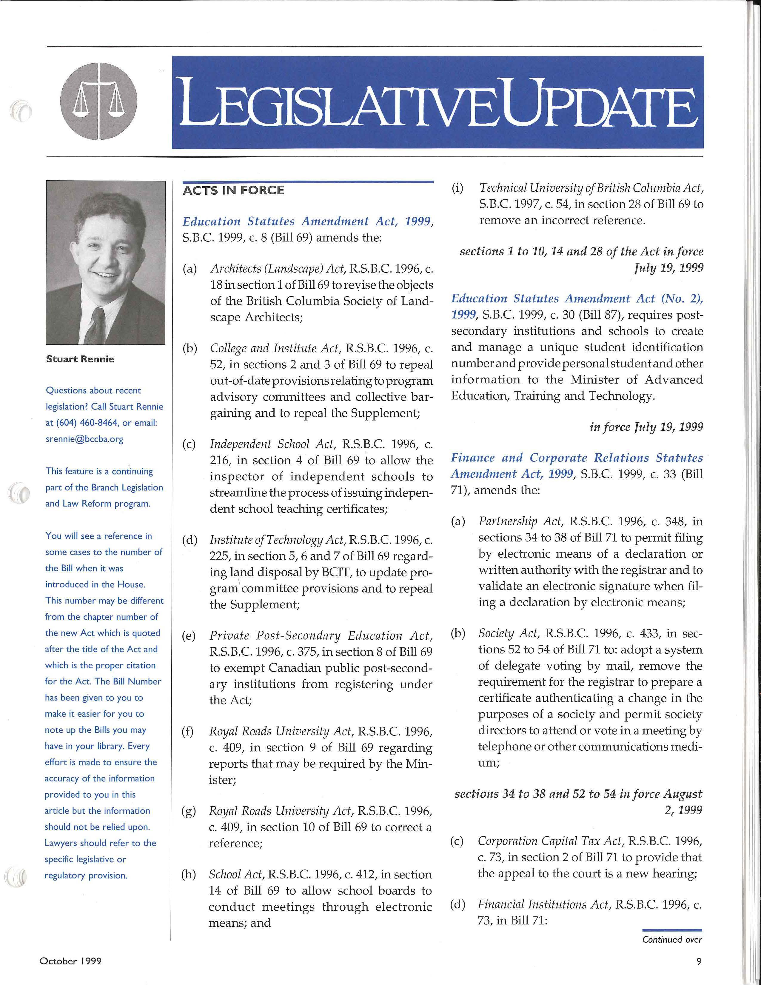 • Le gislation & Law Reform Officer: STUART RENNIE (in Pitt Me adows) (604) 460-8464 srenni e @bccba.org