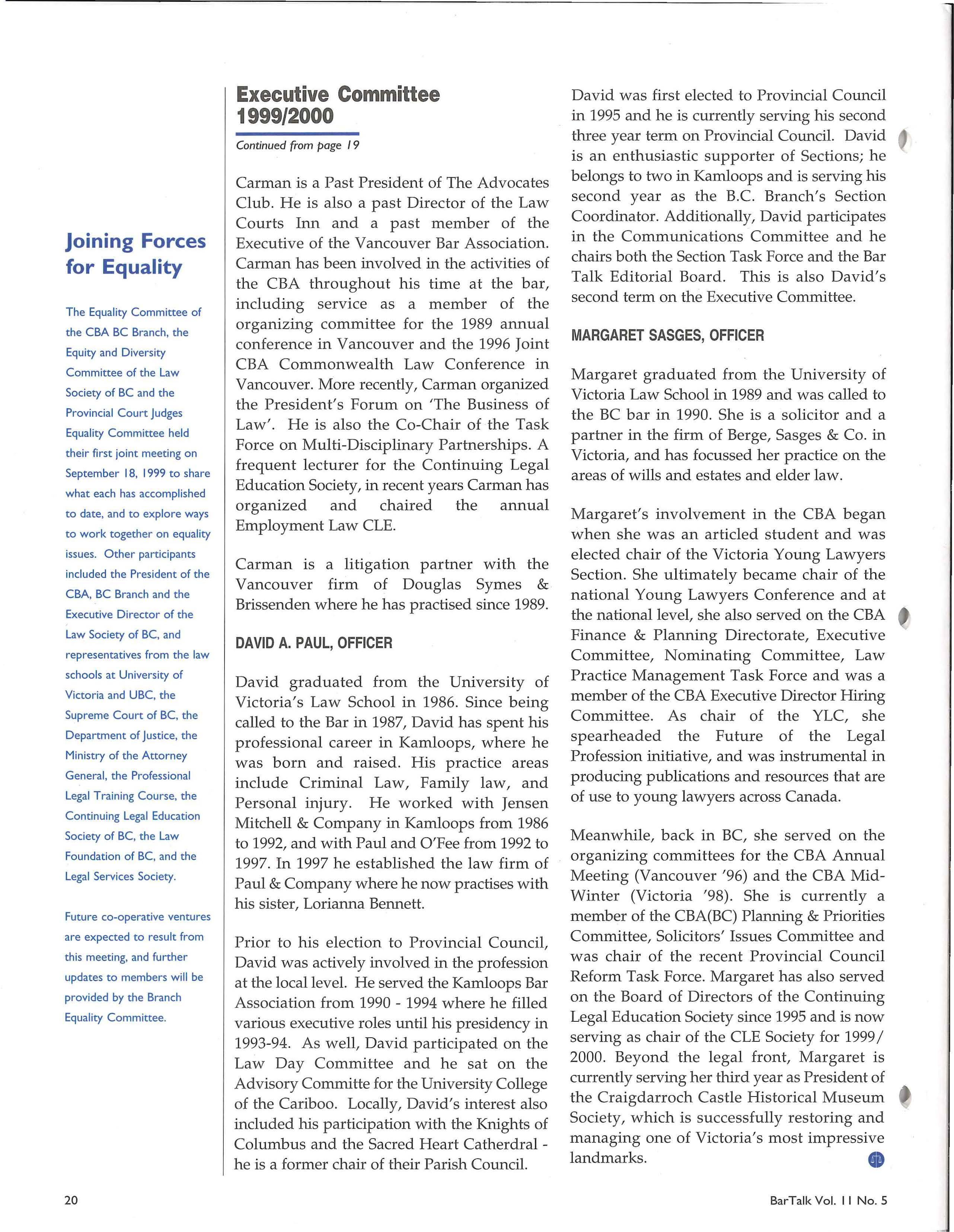 The BC Branch of the Canadian Bar Association will become the organization to which you will turn first for assistance when professional issues arise in your practice . We will ensure that our ability to respond includes everything from addressing concerns about practice management, to being heard at all levels of government on issues that impact directly on our profession or our clients.