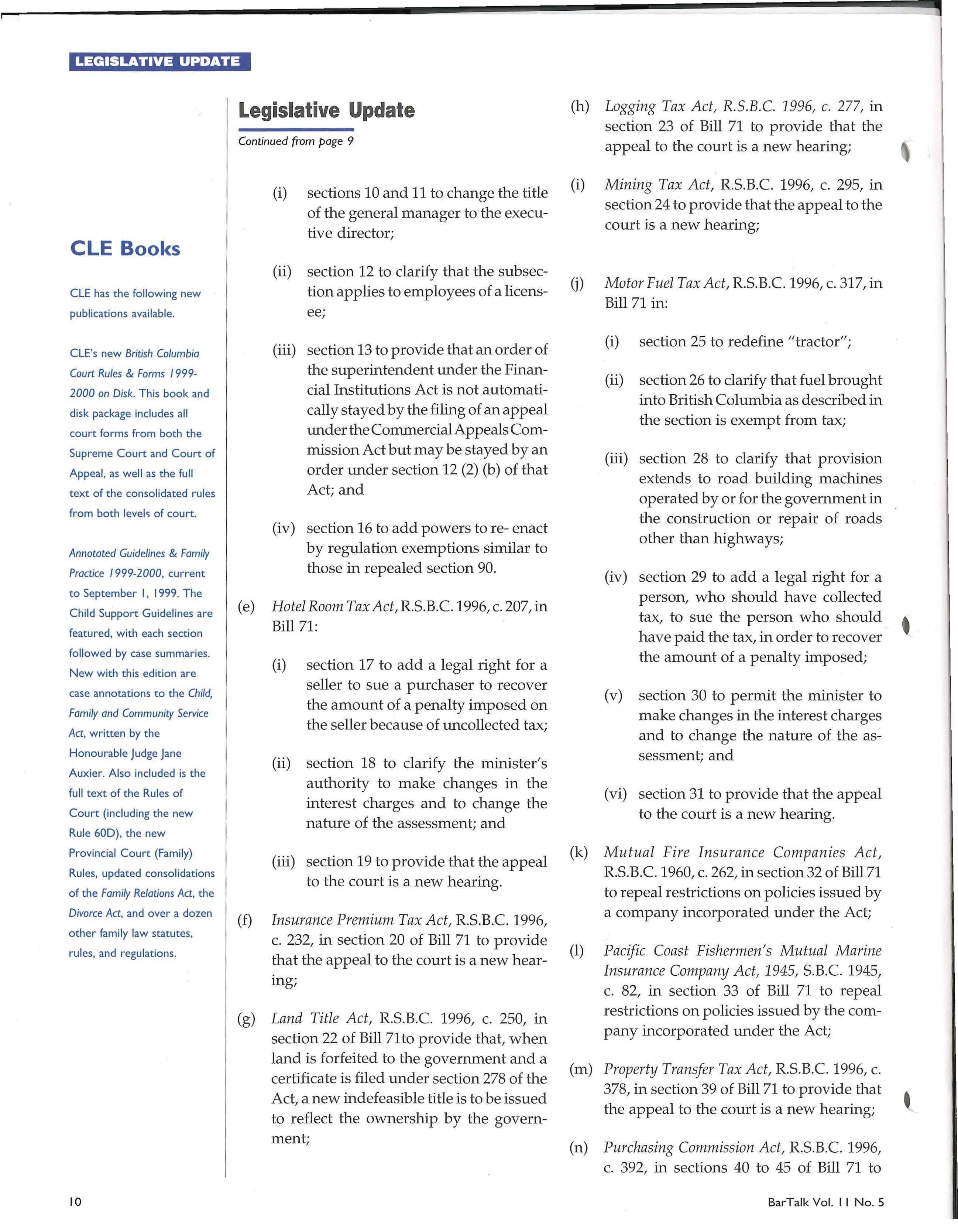 BarTalk is published by the British Columbia Branch of th e Canadian Bar Association, lOth Floor 845 Cambie Stree t Vancouv e r, BC V6B ST3