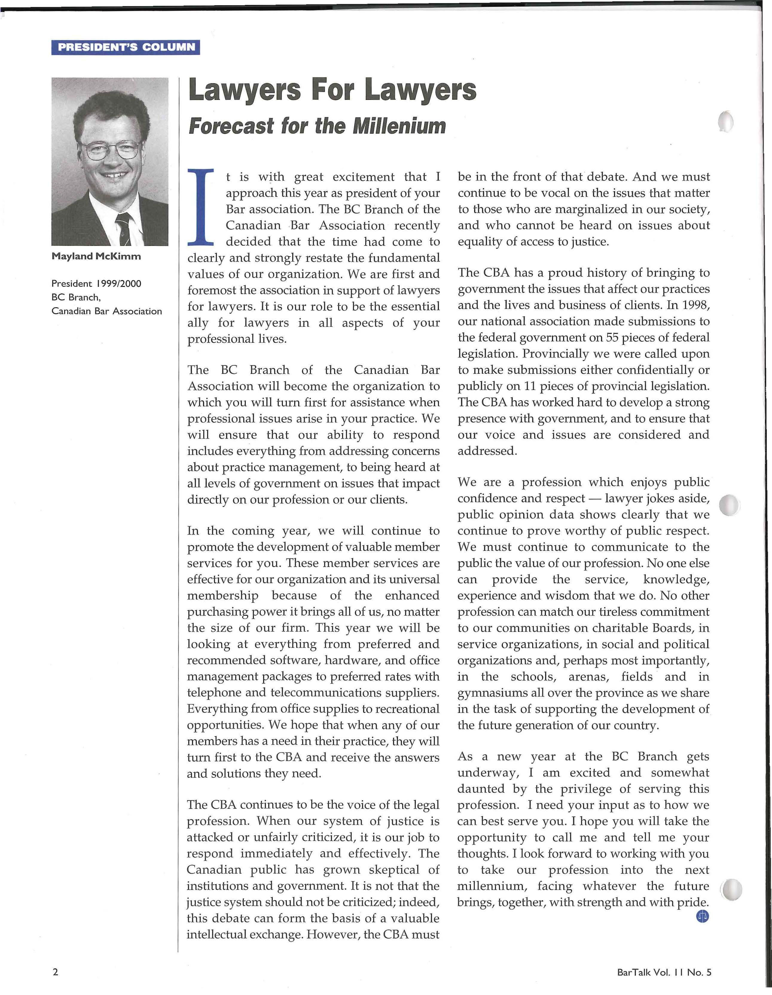 The final in stallm ent of this series will be published in the D ece mber 1999 issue of BarTalk.