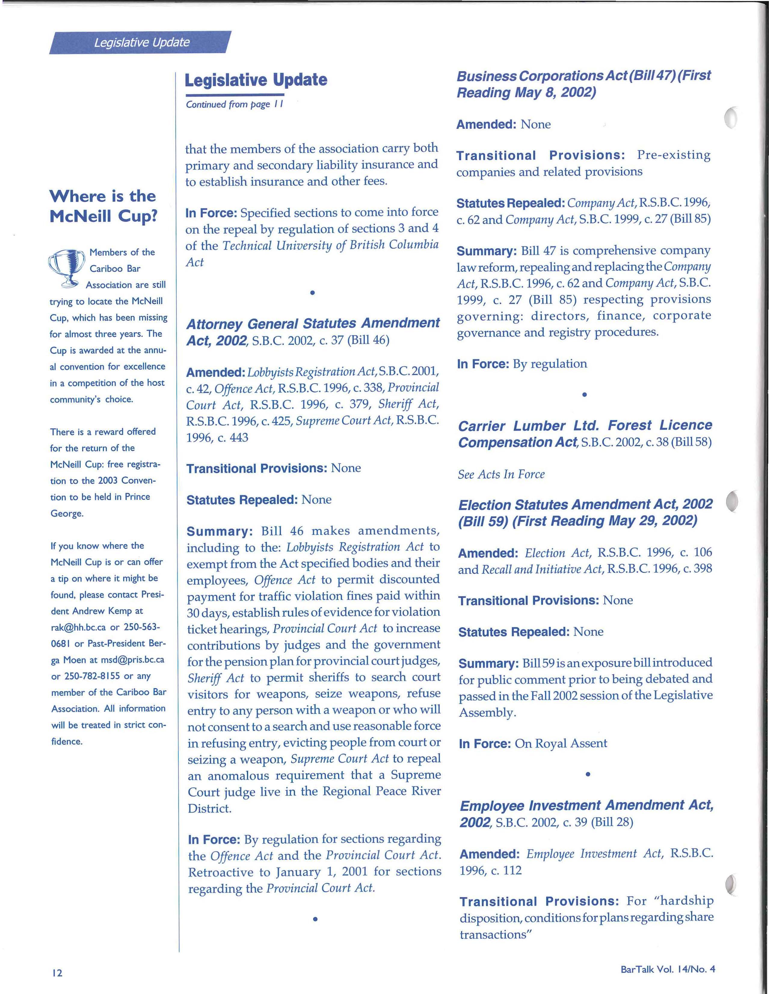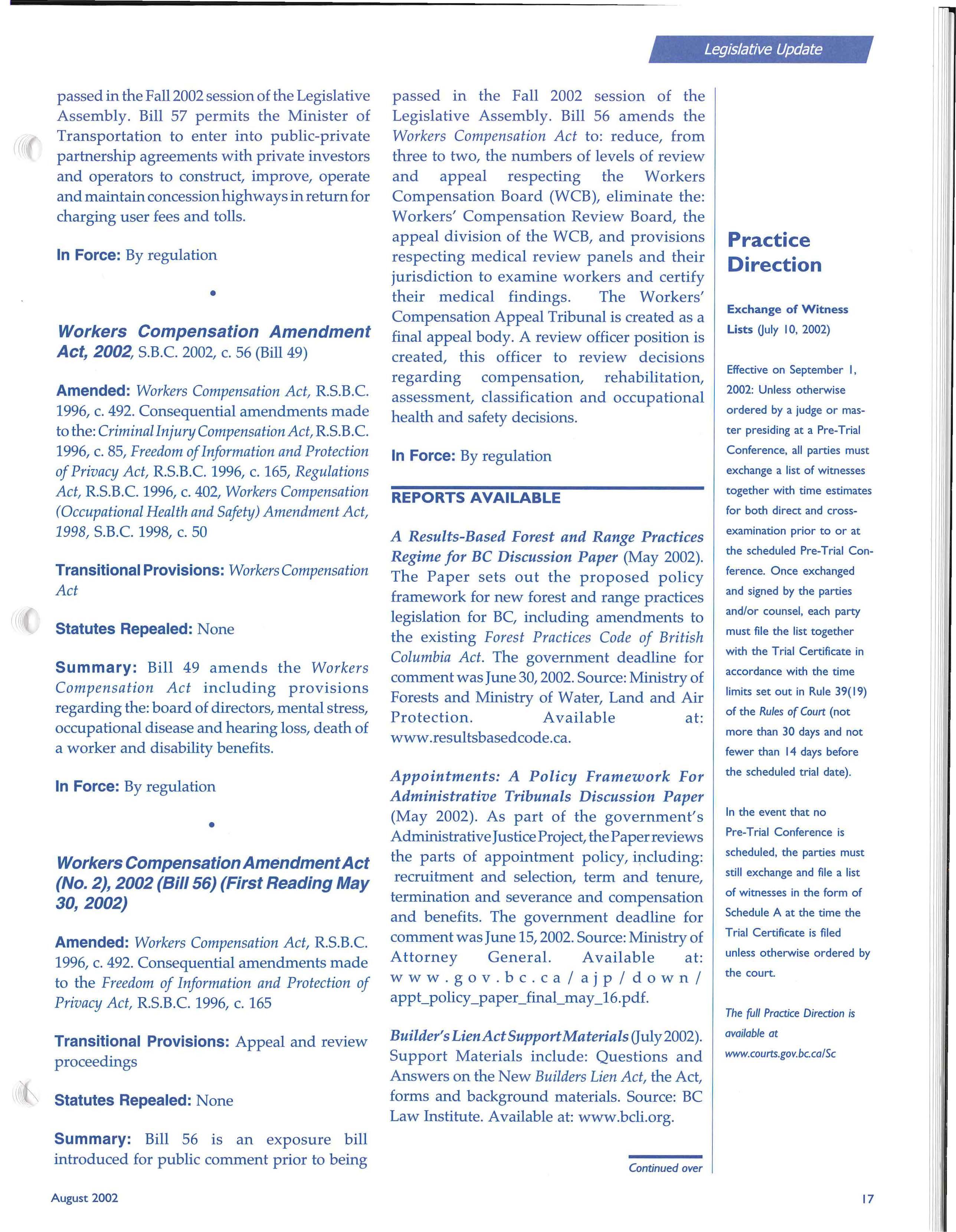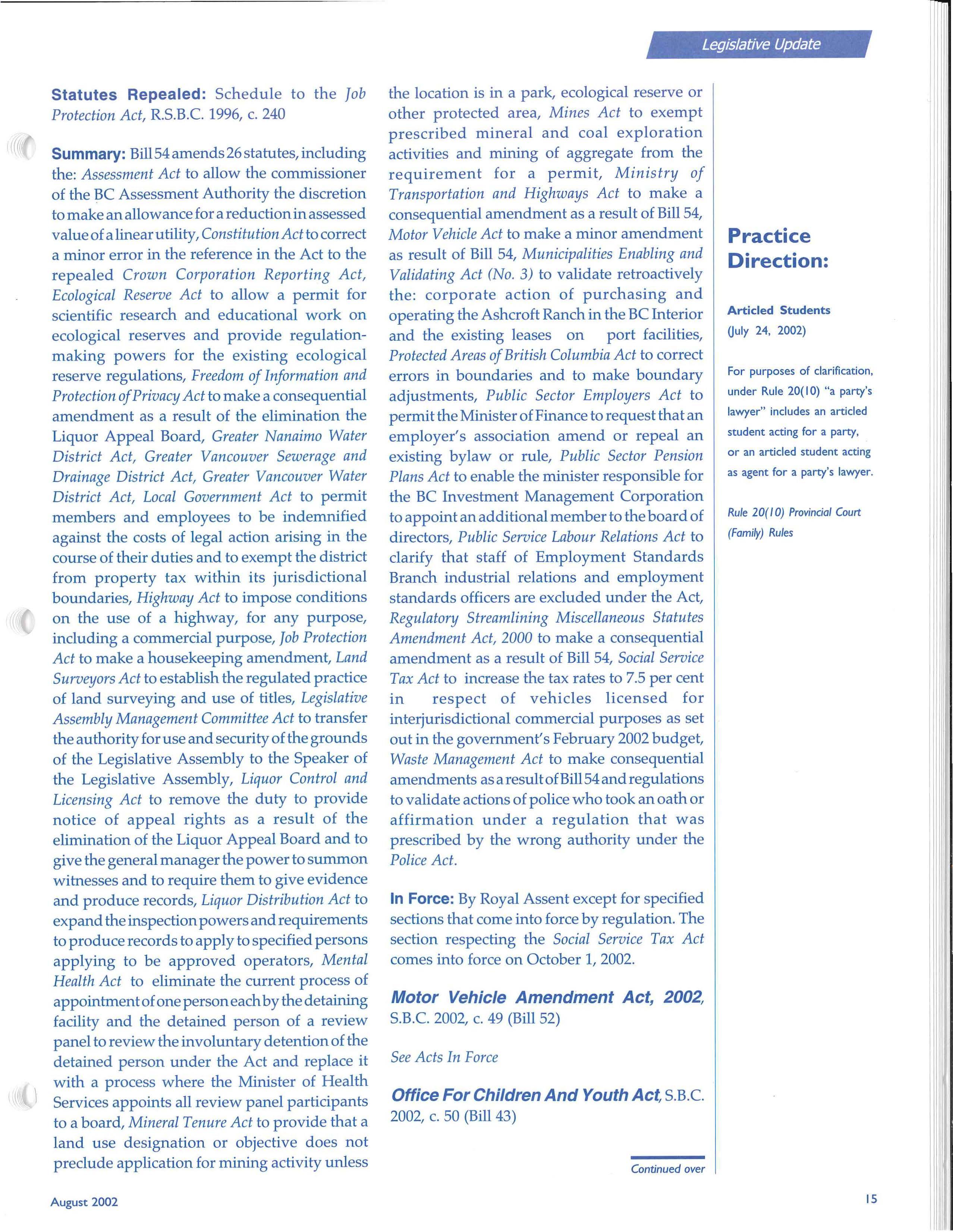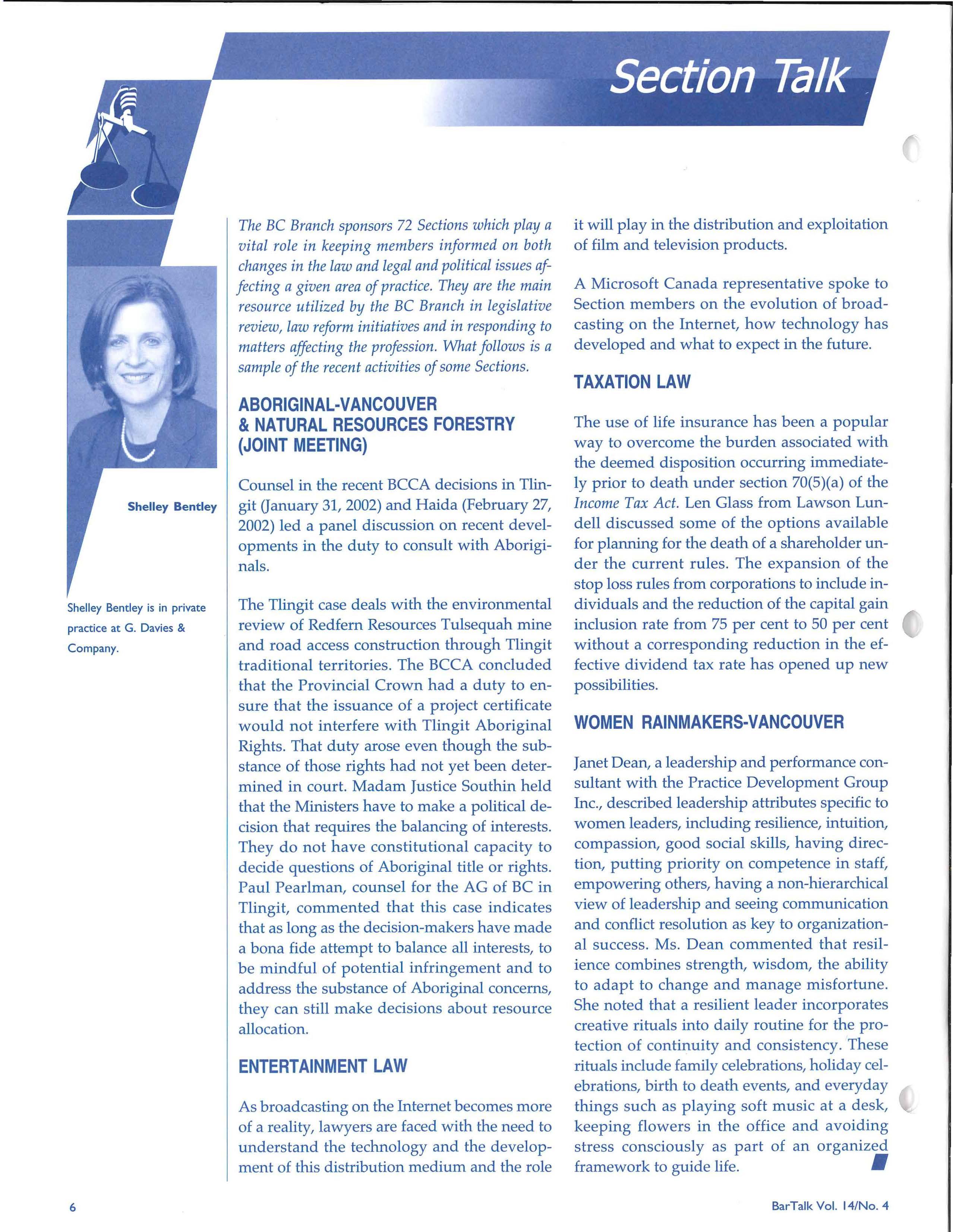 © Copyright the British Columbia Branch of the Canadian Bar Association-2002. This publication is intended for inform· ation purposes only and the information contained herein should not be applied to specific fact circumstances without the advice of counsel.