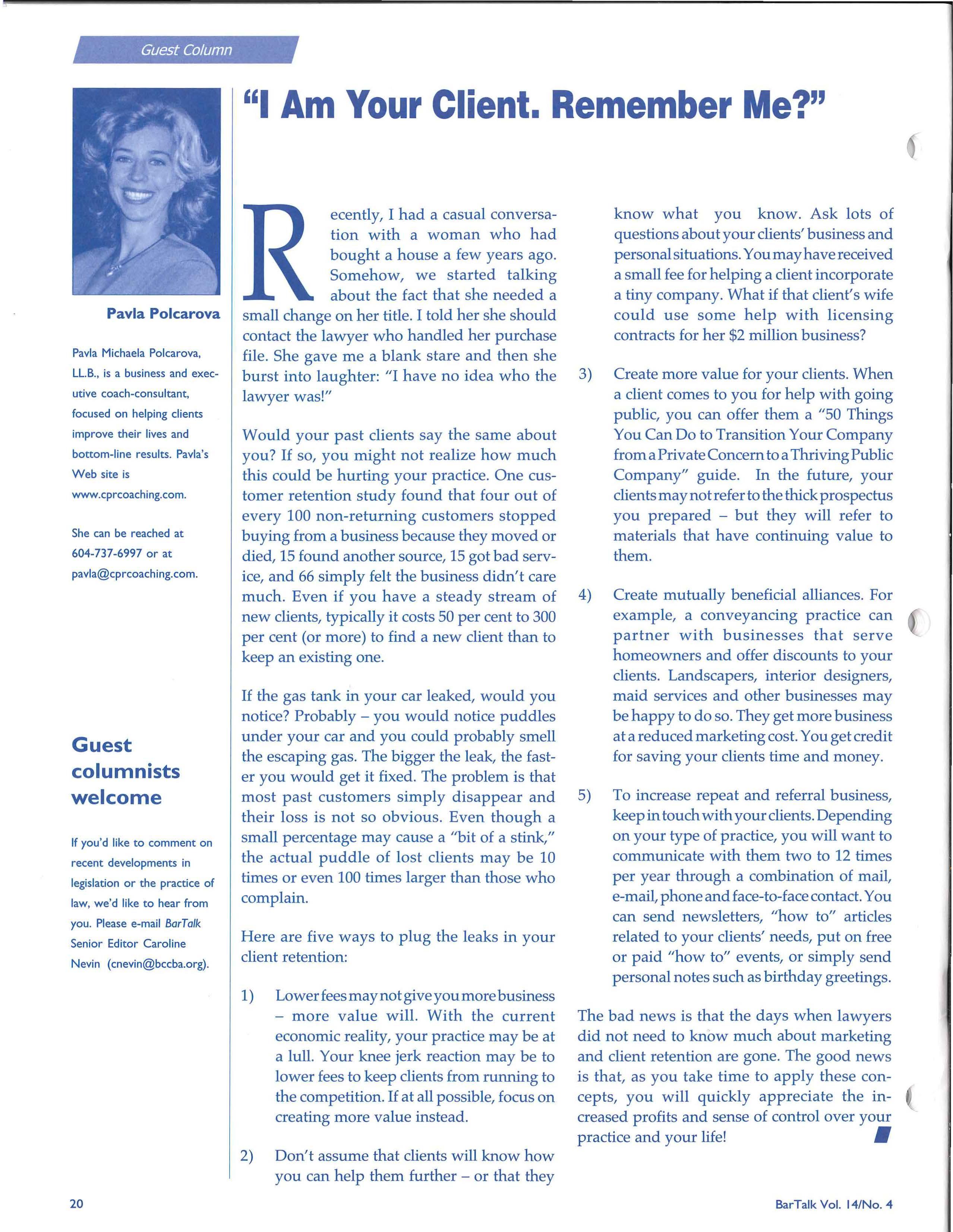 • BarTalk Senior Editor: CAROLINE NEVIN, 604-687-3404, EXT. 320 cnevin@bccba.org