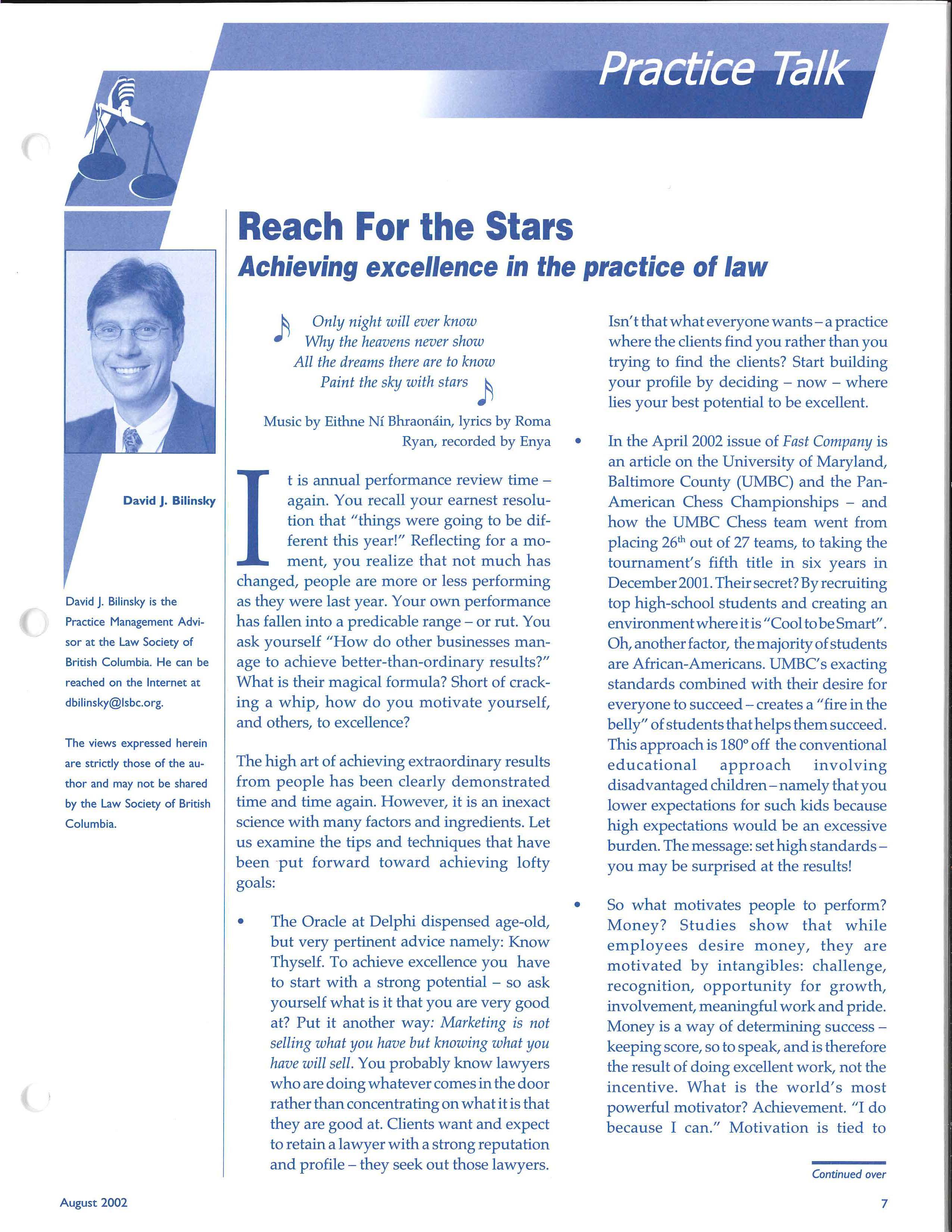 Reach For the Stars Achieving excellence in the practice of law