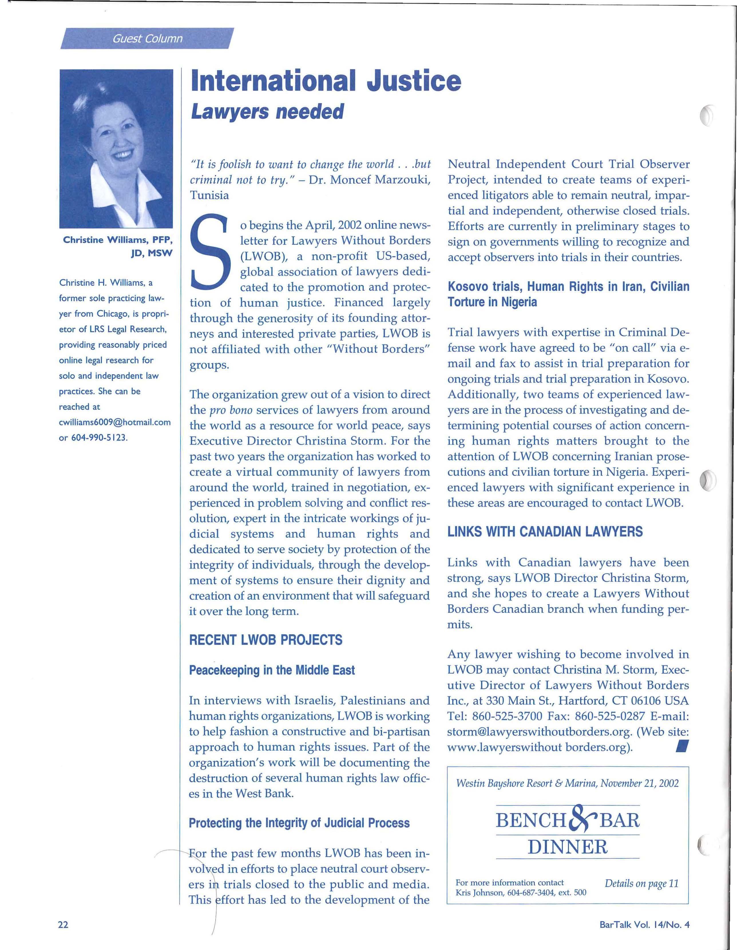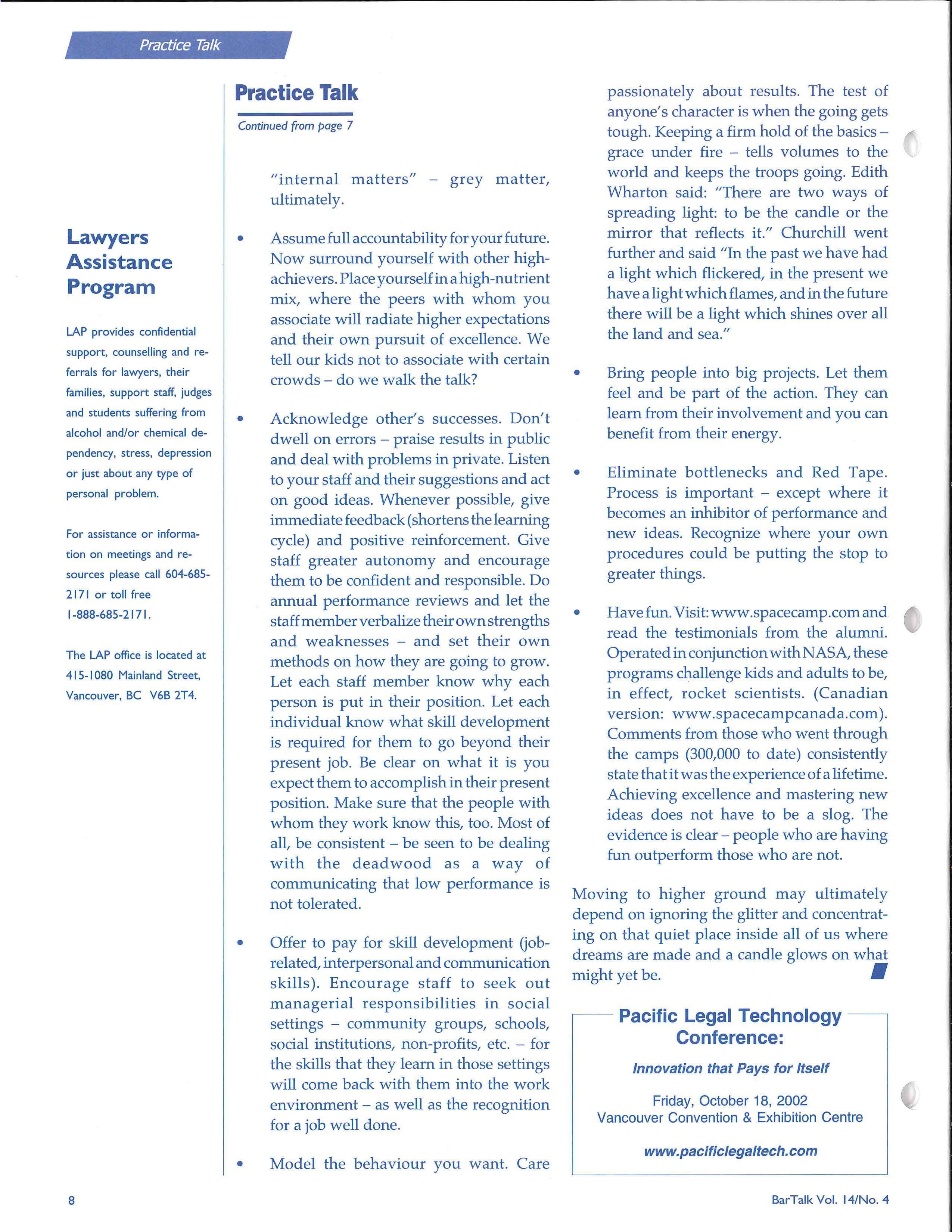 • BarTalk Editor: SANDRA WEBB 604-687-3404, EXT. 318 slgwebb@bccba.org