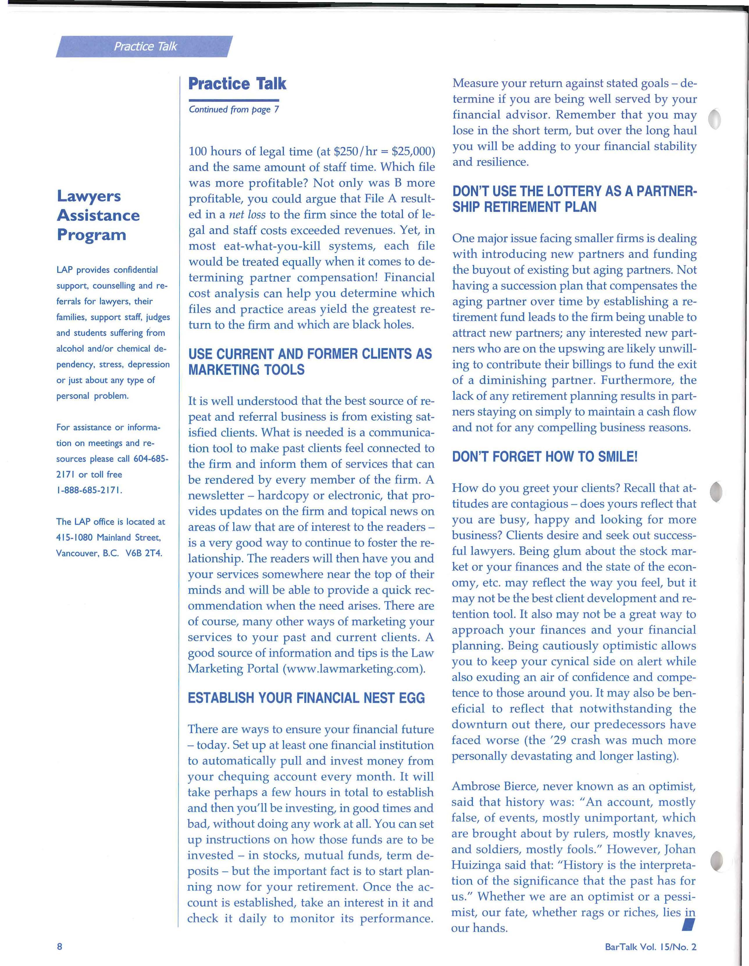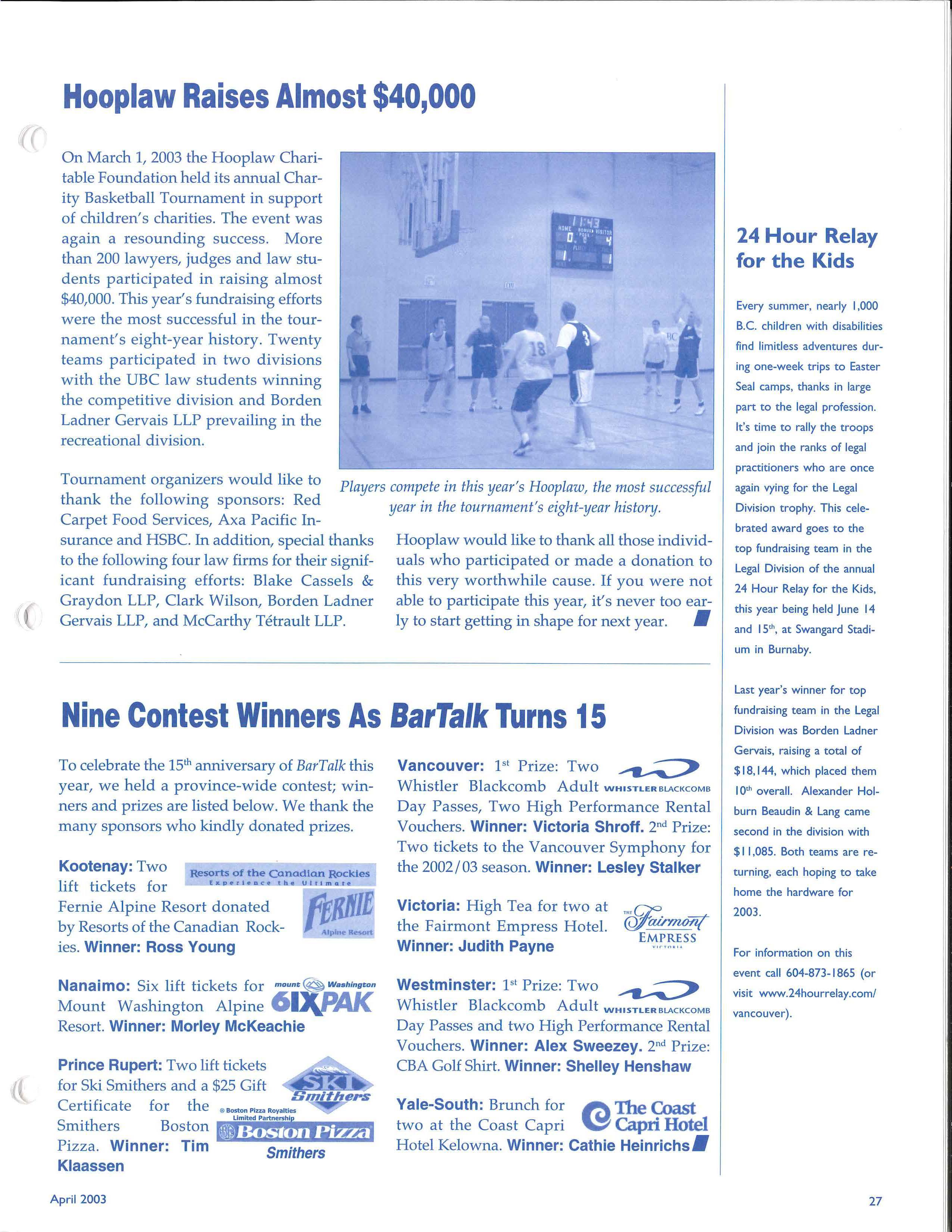 • BarTa/k Editor: SANDRA WEBB 604-687-3404, EXT. 318 slgwebb@bccba.org