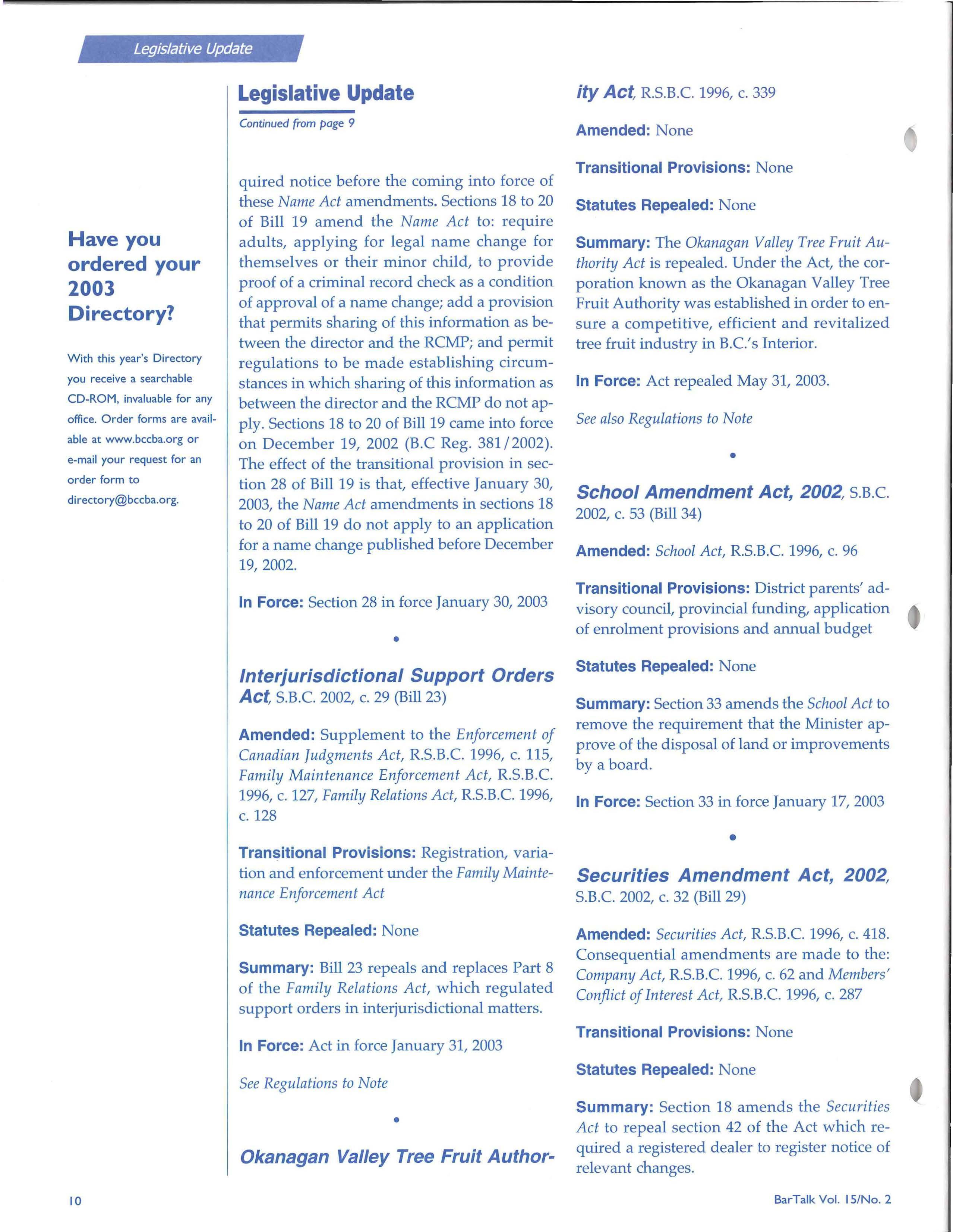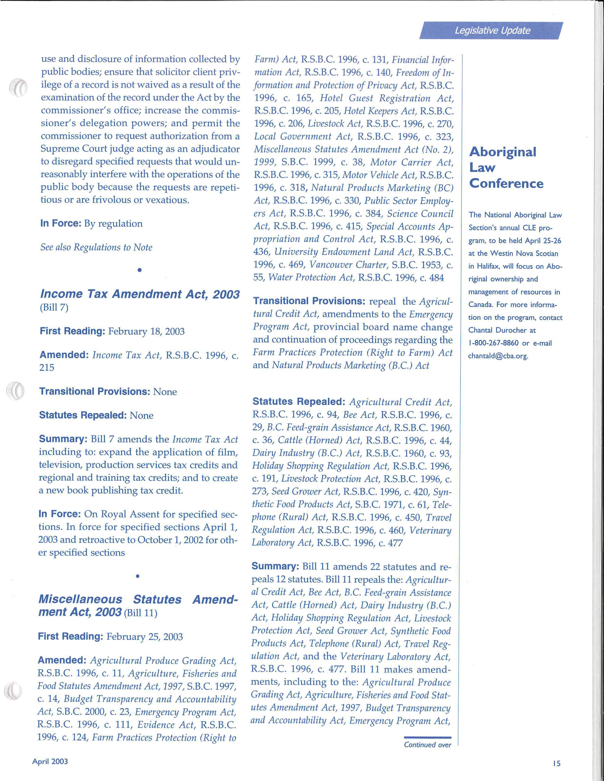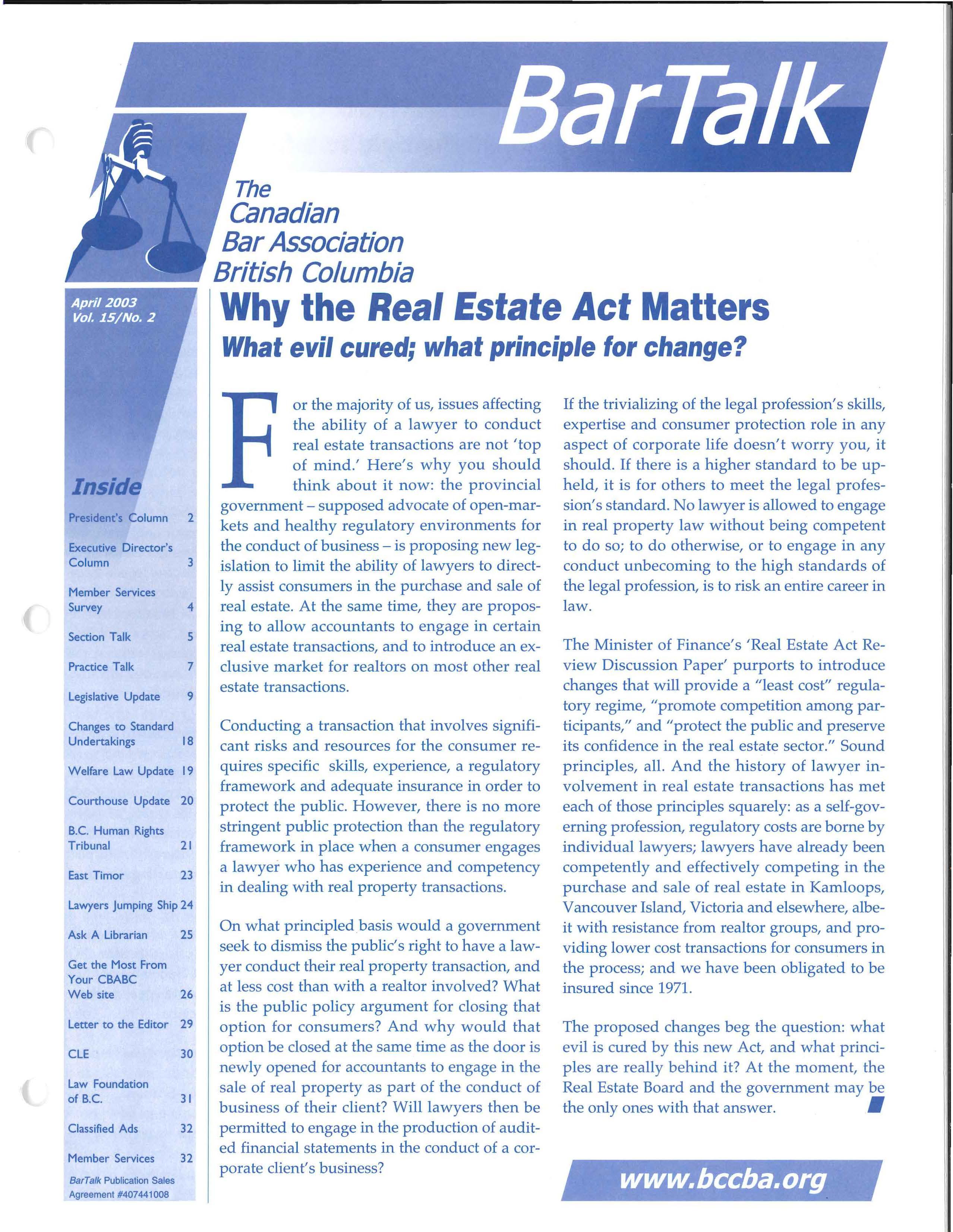 © Copyright the British Columbia Branch of the Canadian Bar Association-2003 .