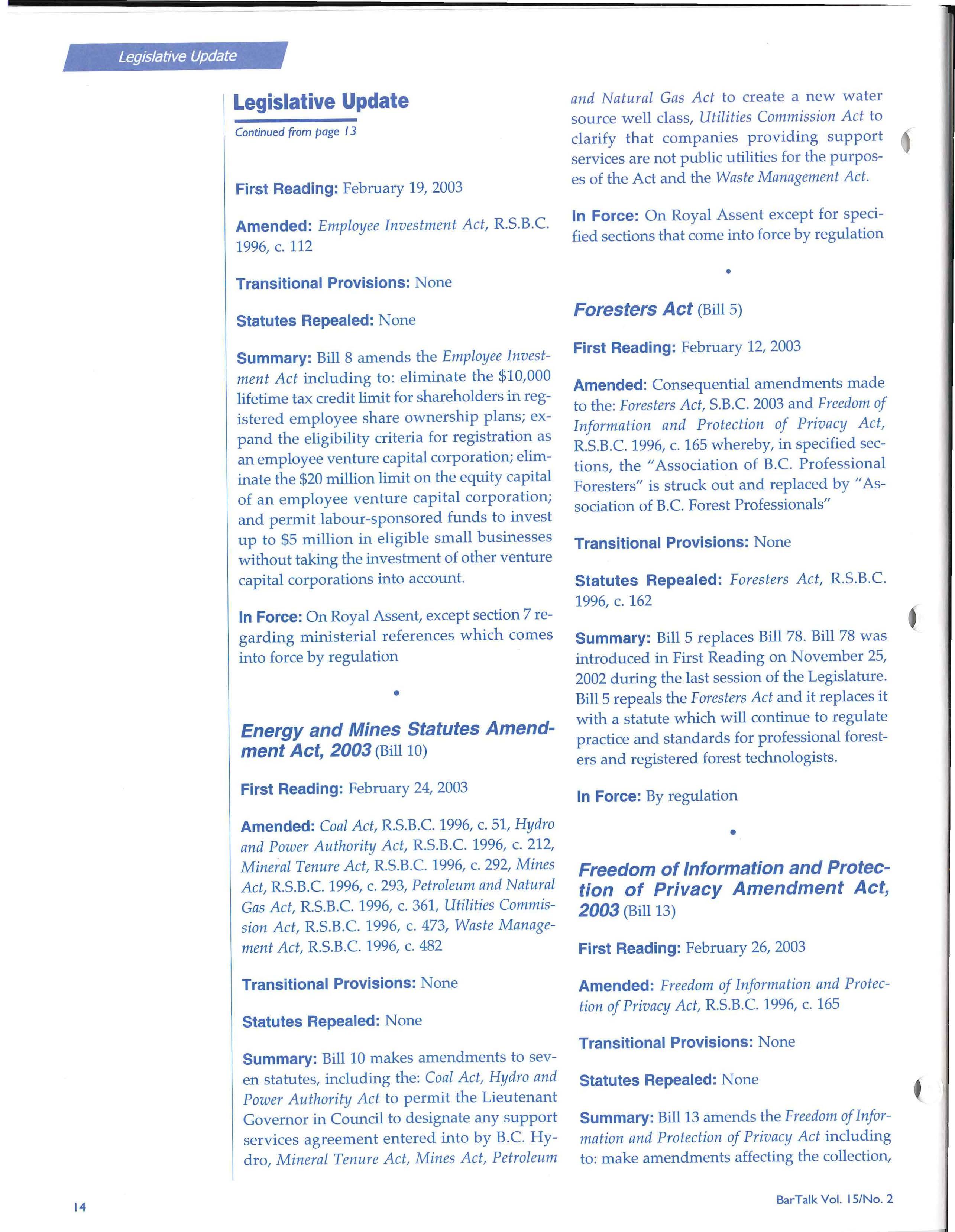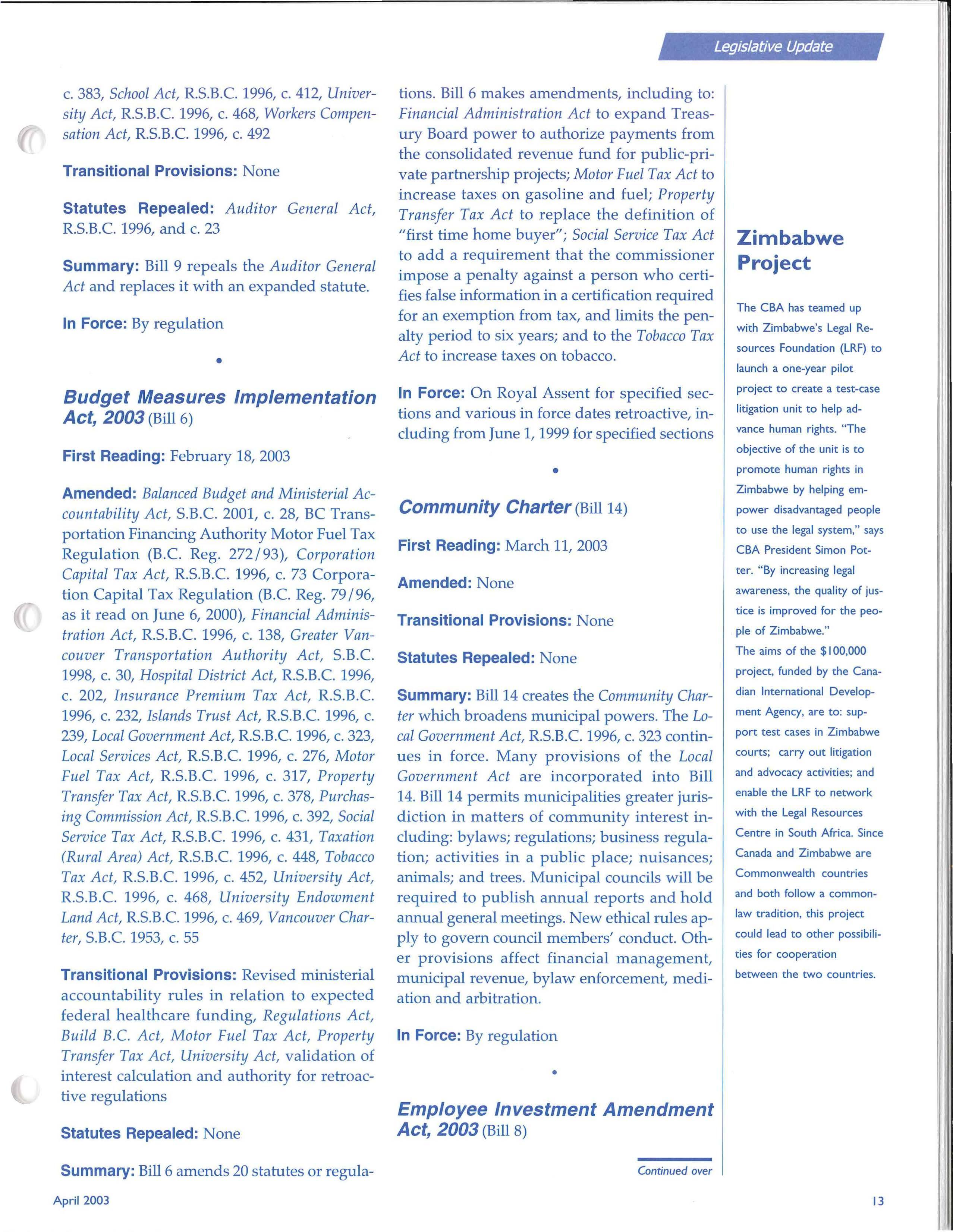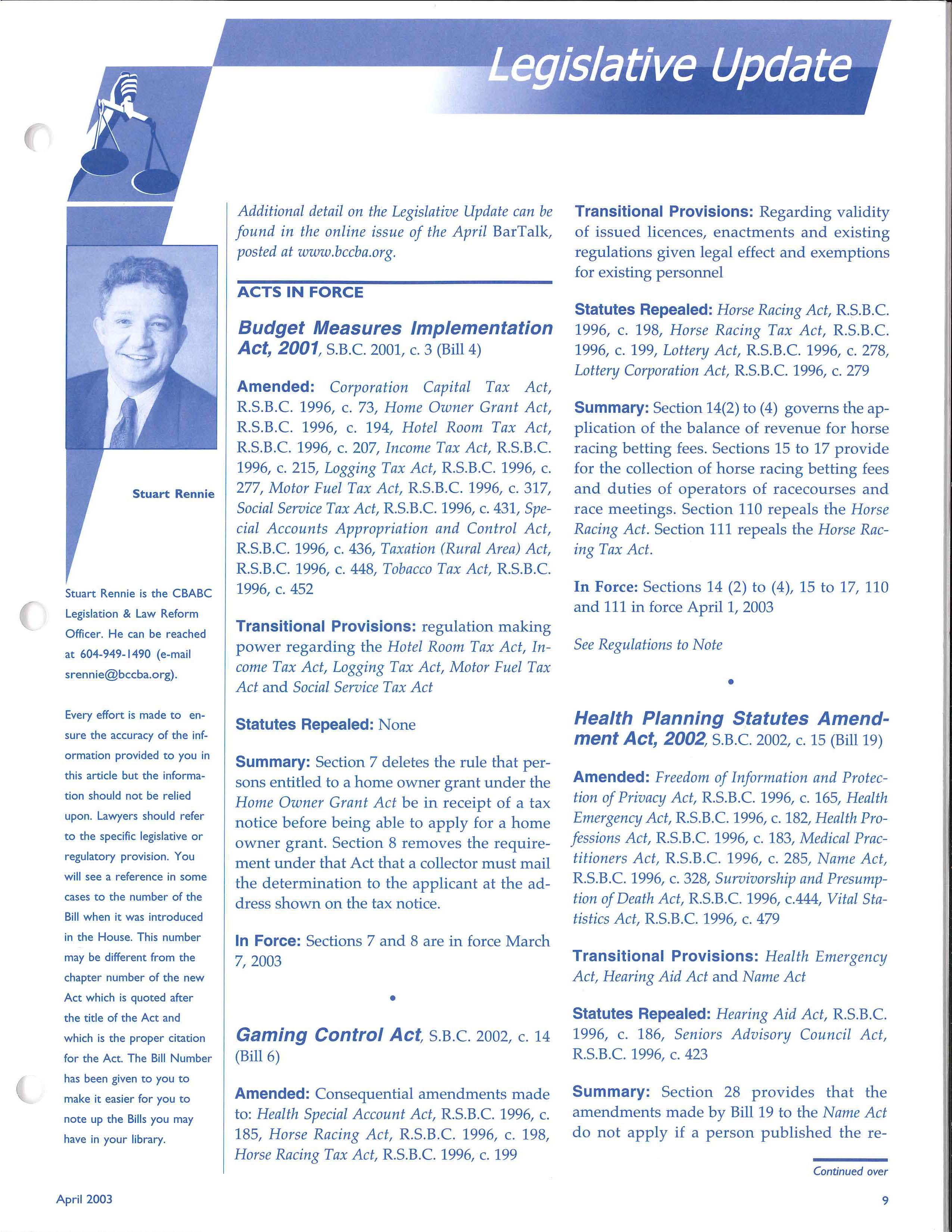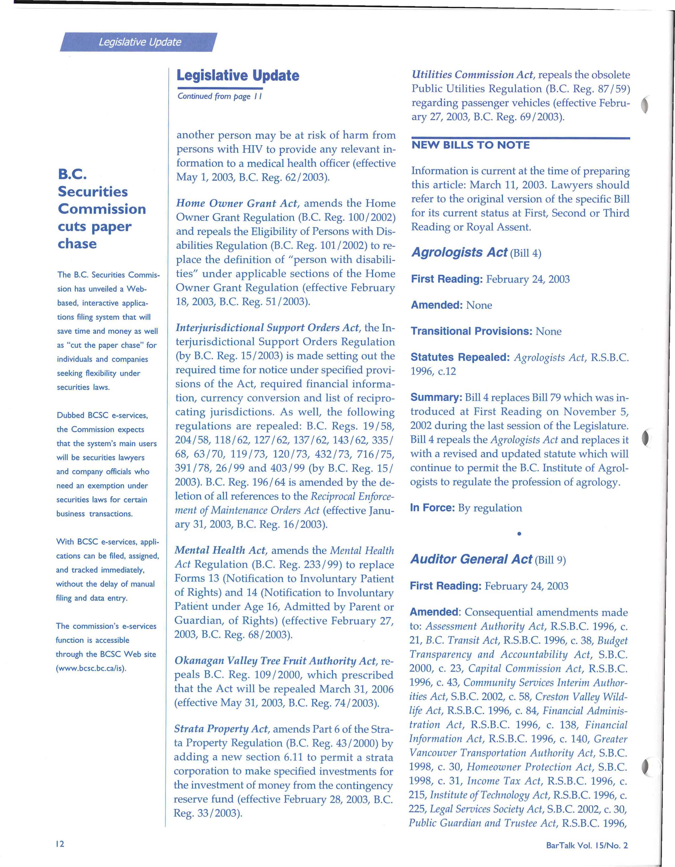 © Copyright the British Columbia Branch of the Canadian Bar Association-2003 .
