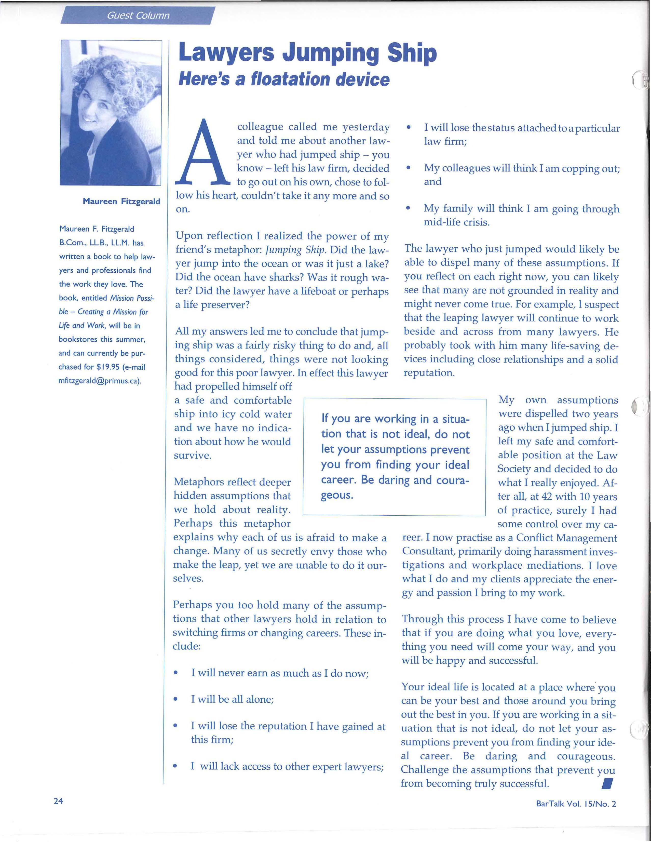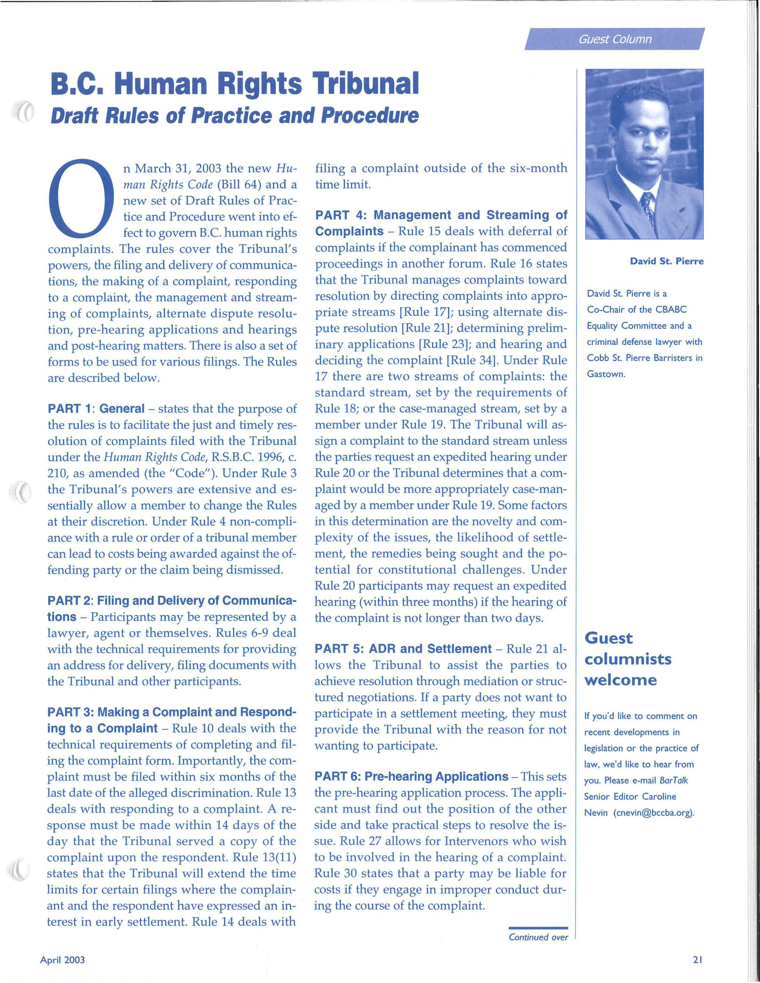 The views expressed herei n are stri ct ly those of the author a nd may not be sha r ed by the Law Soc iety of British Columbia.