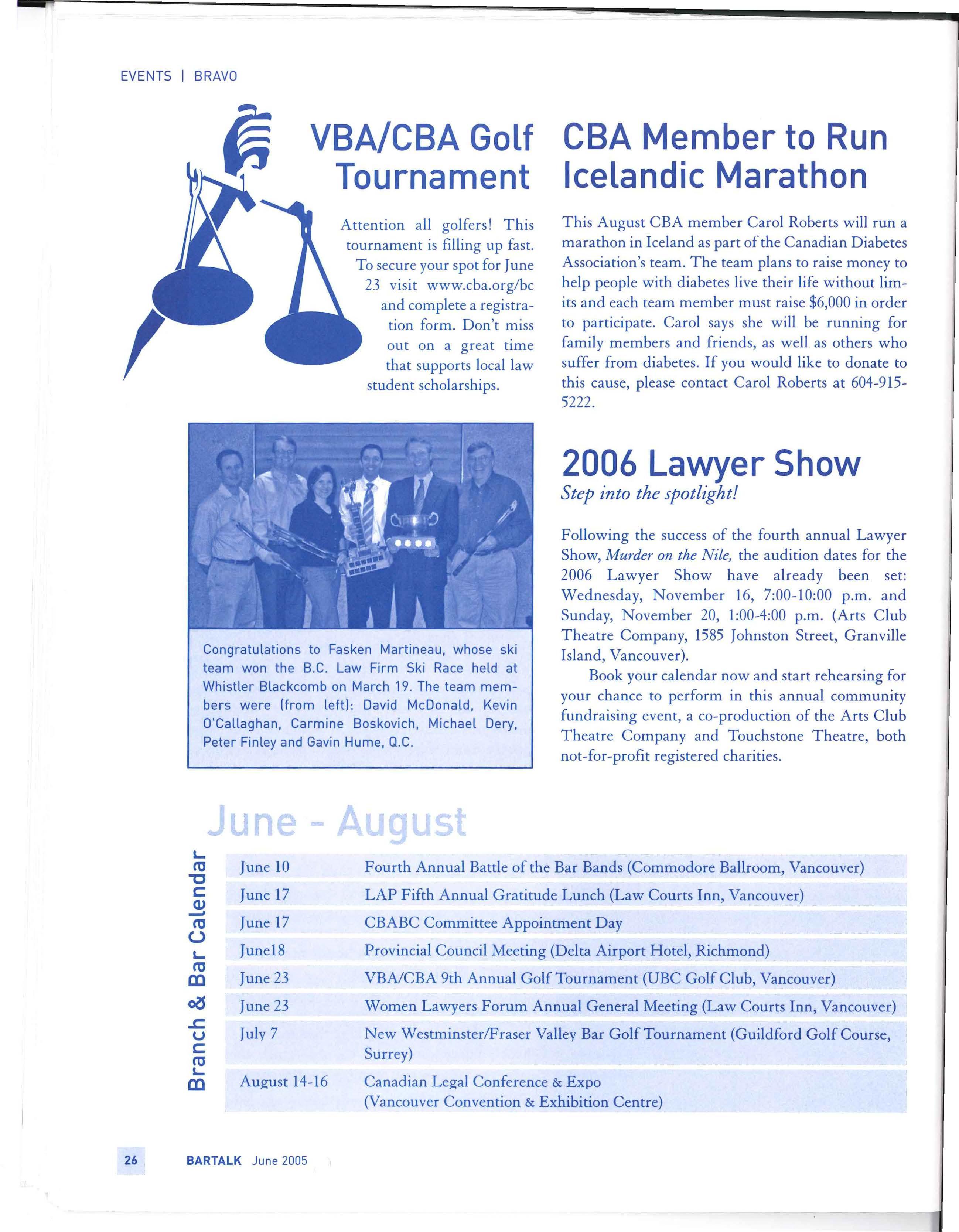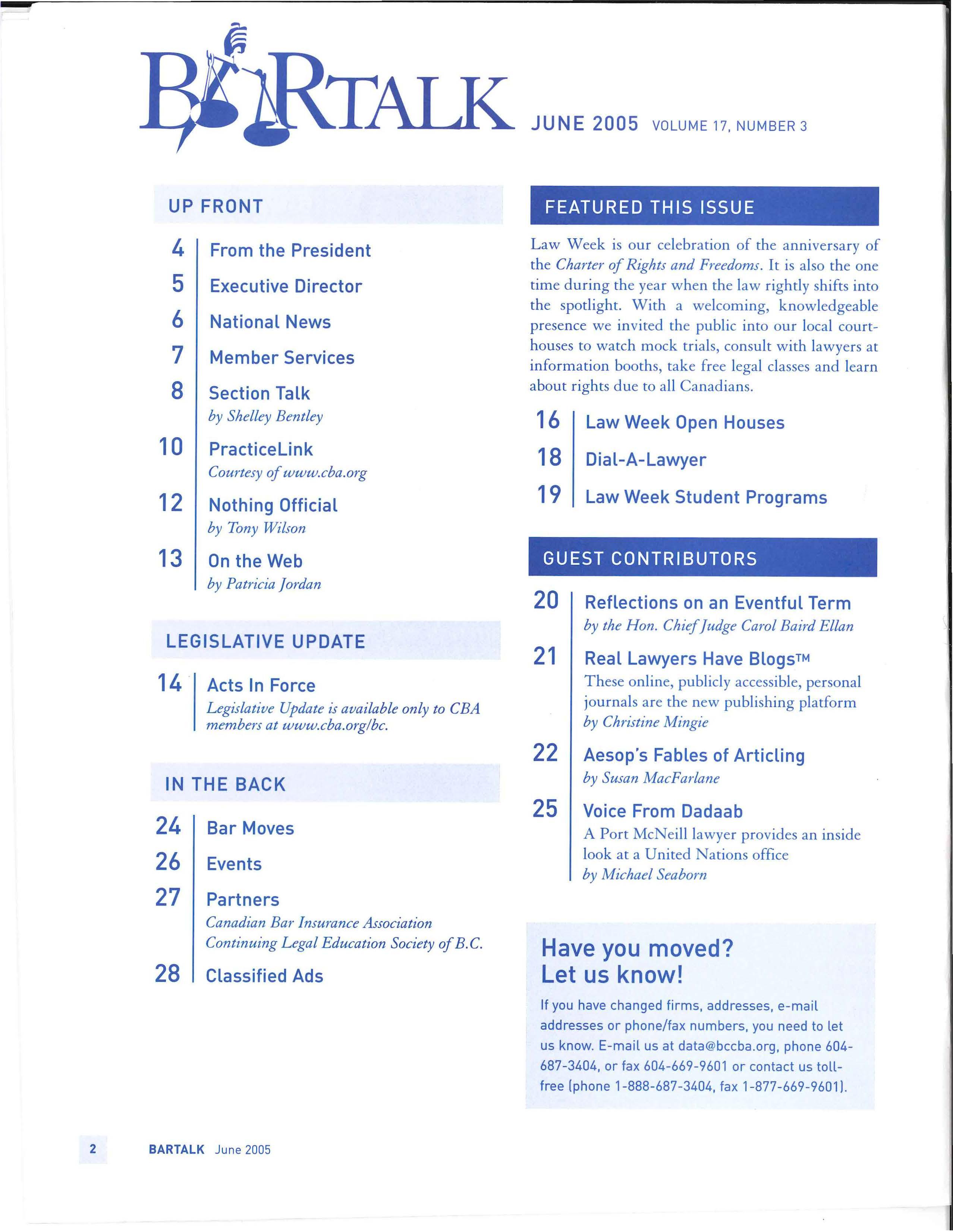 BarTalk is published six times per year by the Canadian Bar Association, British Columbia Branch.