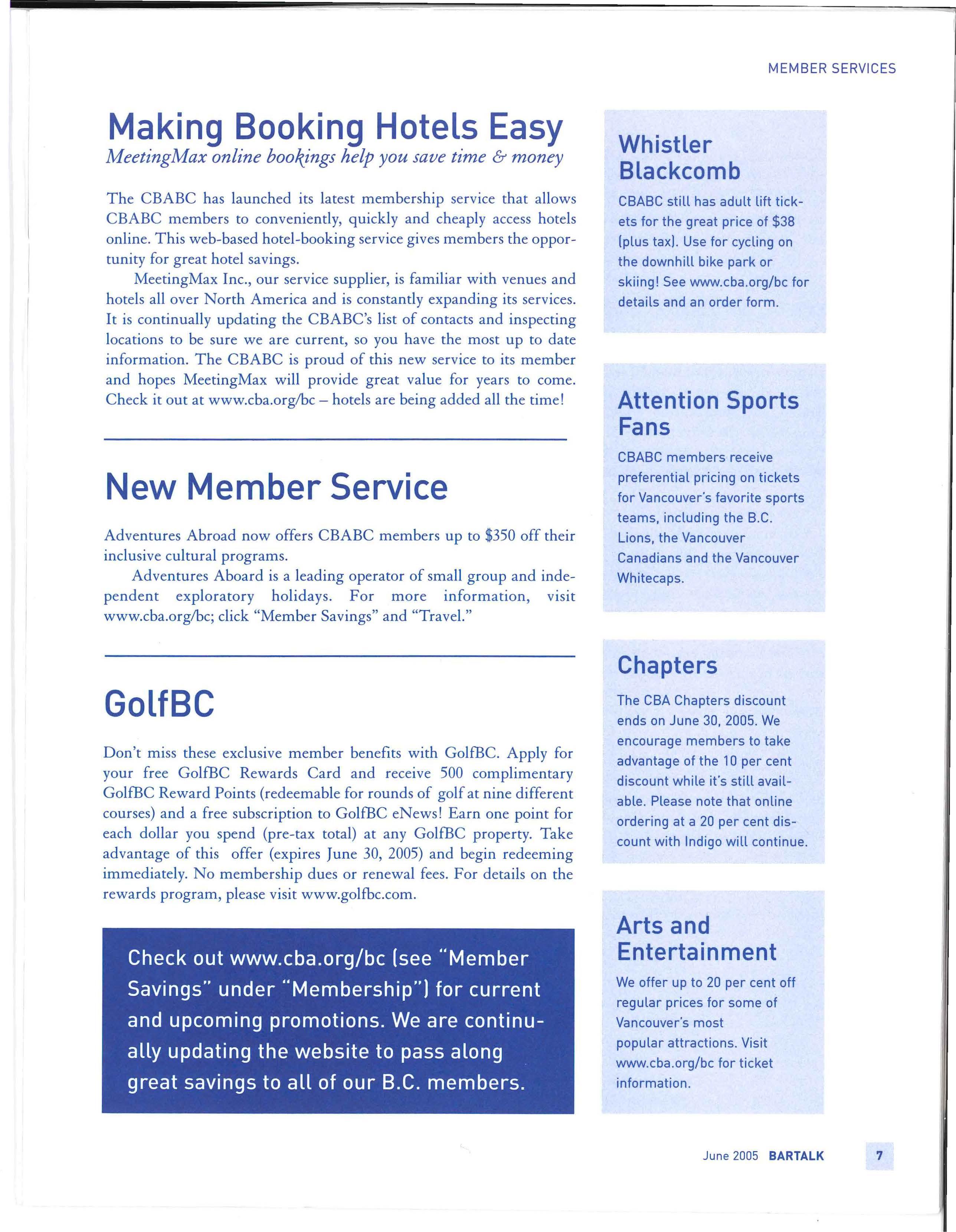 Check out www.cba.org/bc (see "Member Savings" under "Membership") for current and upcoming promotions. We are continually updating the website to pass along great savings to all of our B.C. members.
