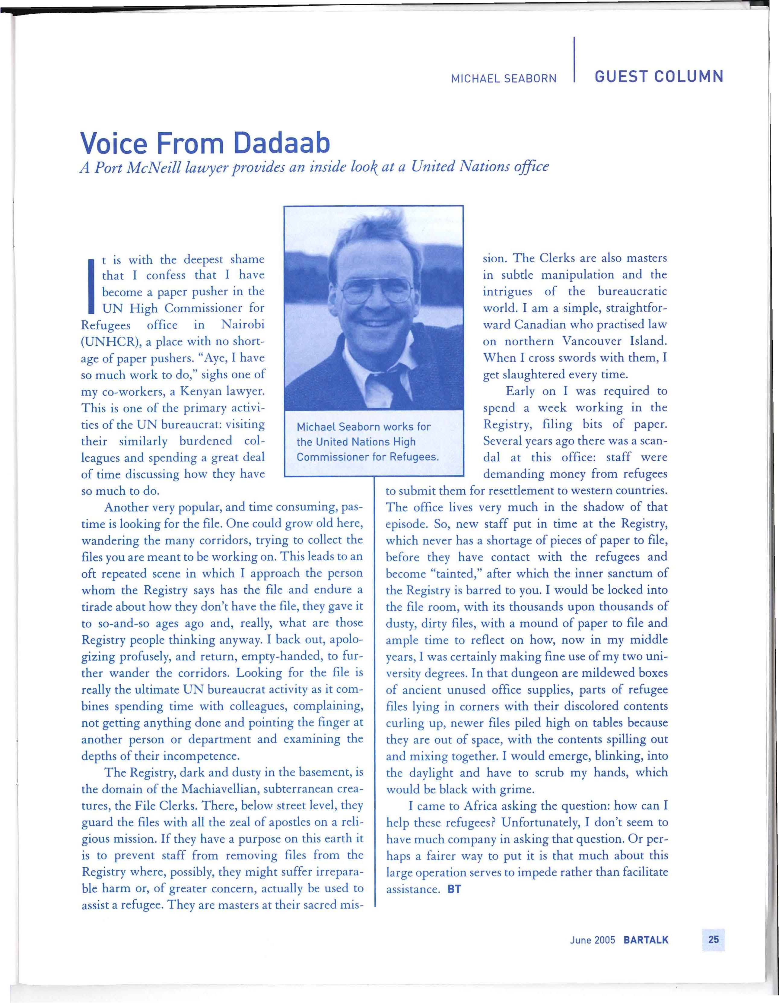 A Port McNeill lawyer provides an inside look at a United Nations office