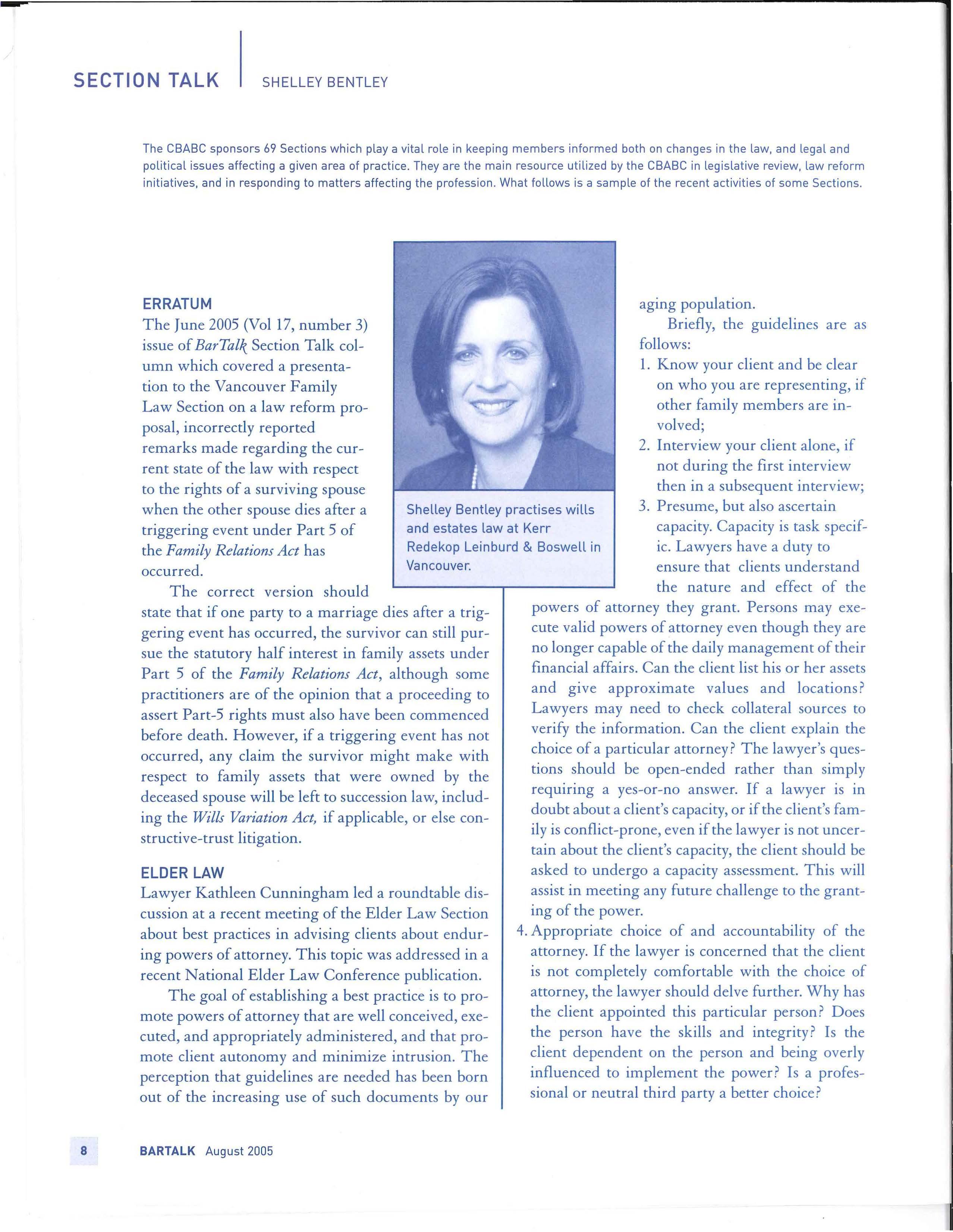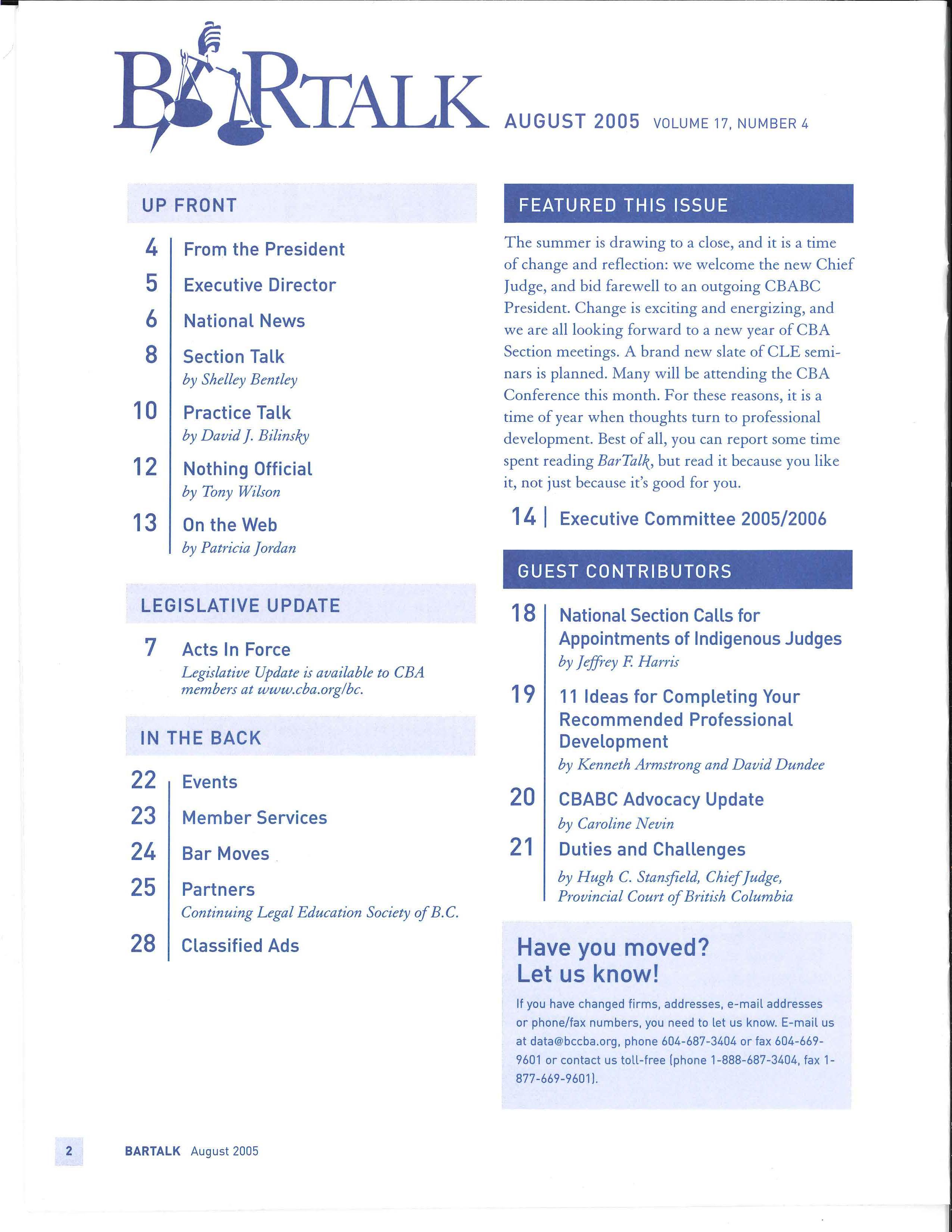 BarTalk is published six times per year by the Canadian Bar Association, British Columbia Branch