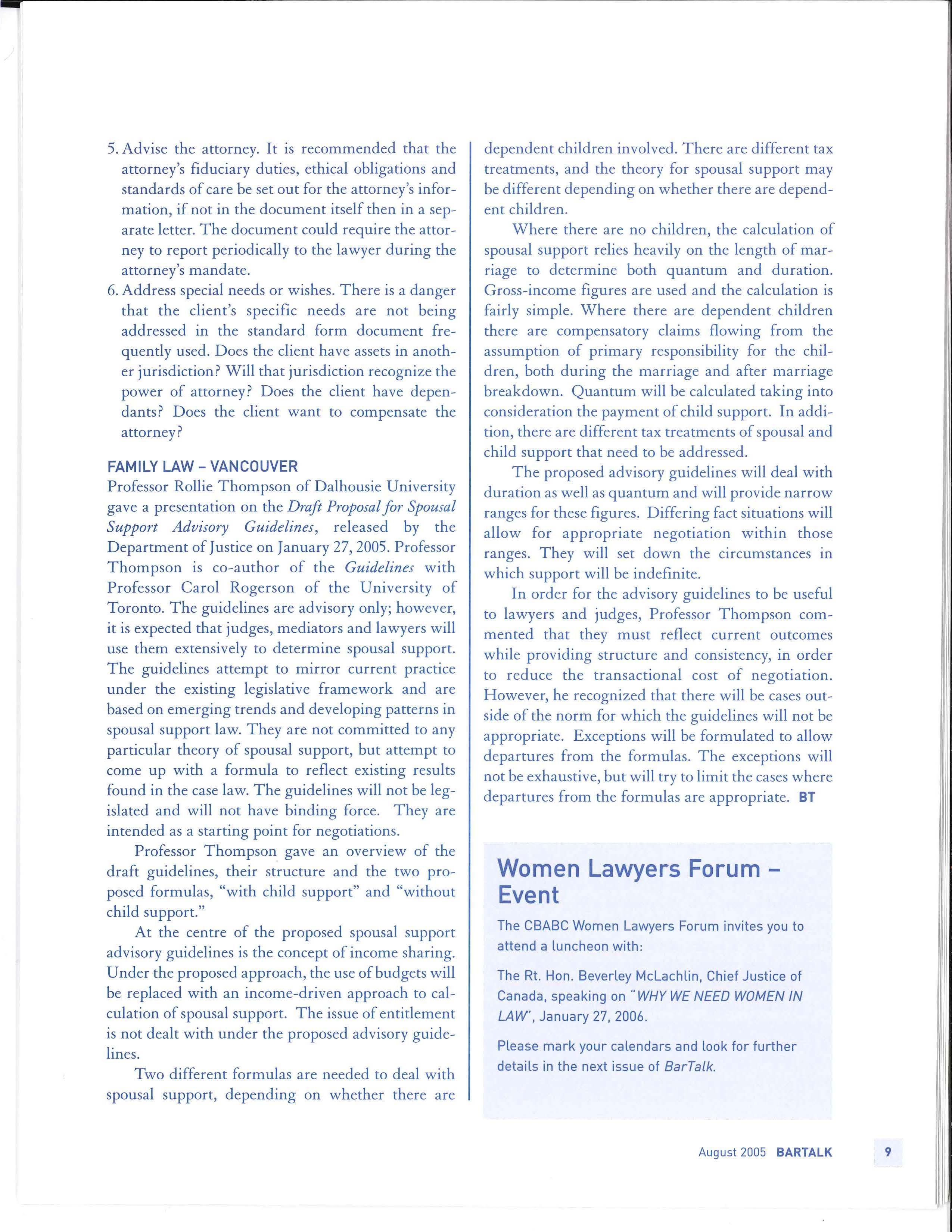 • The Women Lawyers Forum, pioneered in B.C., has been created as a national conference