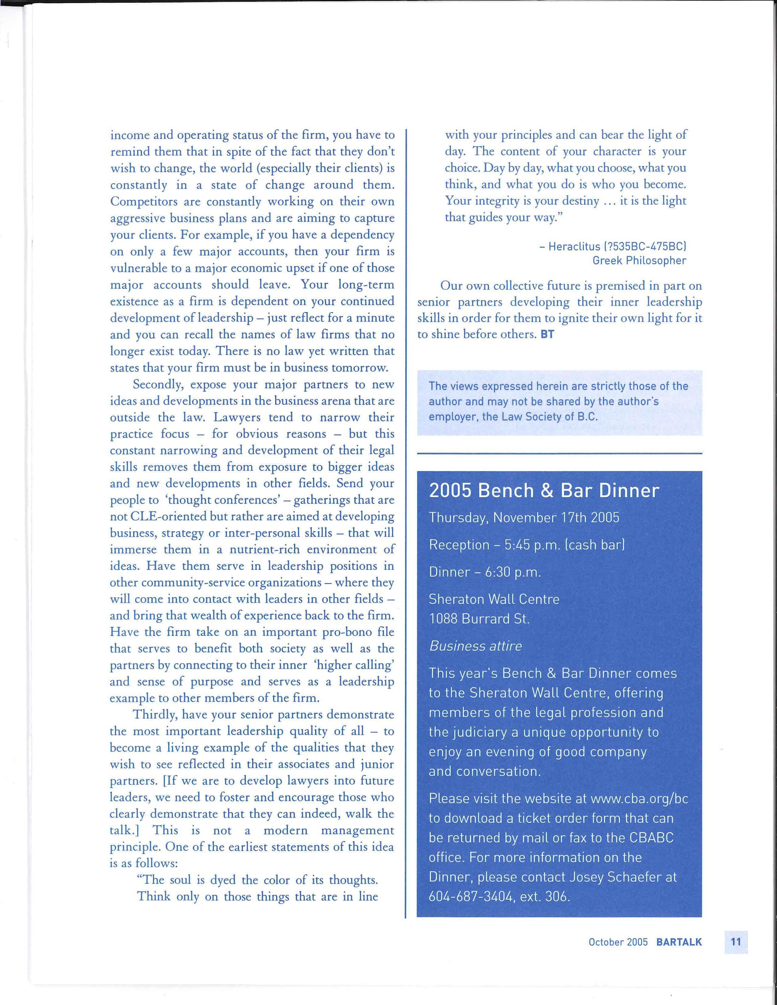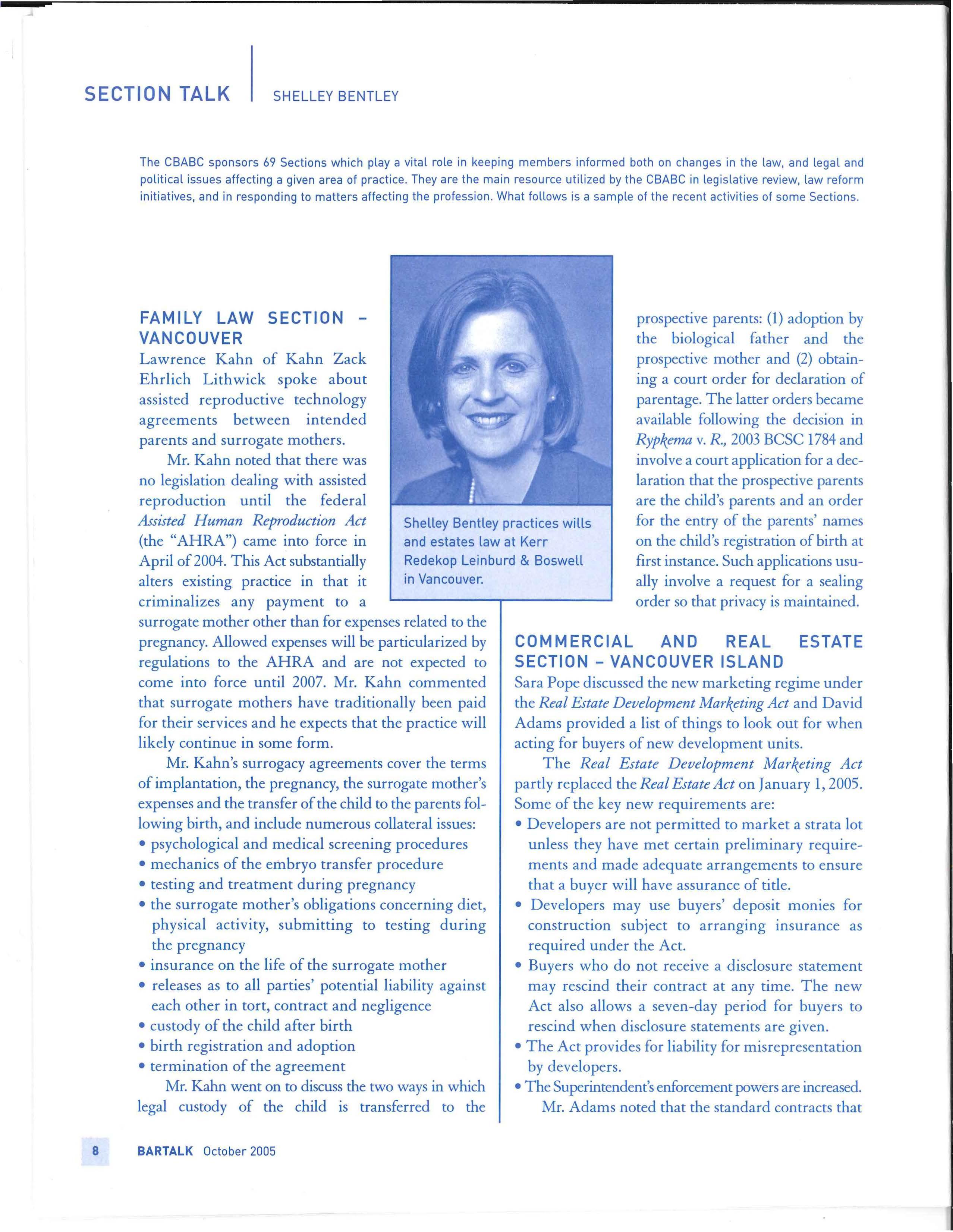 BarTalk is published six times per year by the Canadian Bar Association, British Columbia Branch.