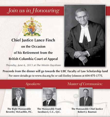 Join us in honouring chief Justice lance finch 22 cBABc wlf education day: April 26, 2013 international women’s day: march 8, 2013