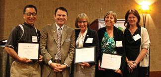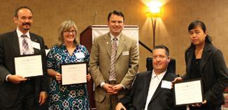 Honoured by CBABC President Dean Crawford in recognition of their three years of service on the Provincial Council. L-R: Michael Welsh, Lisa Hamilton, CBABC President Dean Crawford, and Ken Kramer.