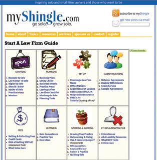 MyShingle.com is another website with a tremendous collection of resources for someone looking to start their own firm.