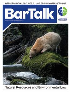 Natural Resources and Environmental Law = Change. Each field of law has and will continue to evolve to address new data, conservation, Indigenous ecological knowledge and the ever dynamic environmental landscape. Change is apparent in this issue, be it the implications of recent decisions on interprovincial pipeline projects, the new Water Sustainability Act regulating groundwater and water use conflicts or the regulatory uncertainty that is, in part, impacting LNG projects in BC, not to mention the Trudeau government’s review of the Canadian Environmental Assessment Act, which may be the most fundamental transformation of federal environmental law in a generation!