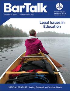 Much like law, education is a fundamental institution to the functioning of our society: it is meant to examine the nuances of the world and provide the best normative advice it can muster. Education and academia in particular, however, transcend culture, society and government. But what is the legal framework around education? What does our legal institution do to protect our freedom of inquiry, and how can it be used to inhibit it? This issue of BarTalk examines (among others) liability in classrooms, freedom of expression on campus, student discipline and appeals, Trinity Western University’s bid to open a law school, and the power of education (and the role of professors) in shaping the way students see the world.