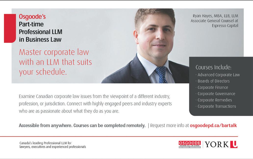 BarTalk is published six times per year by the Canadian Bar Association, BC Branch (“CBABC”) and is available at cbabc.org/bartalk. This publication is intended for information purposes only and is not legal advice.