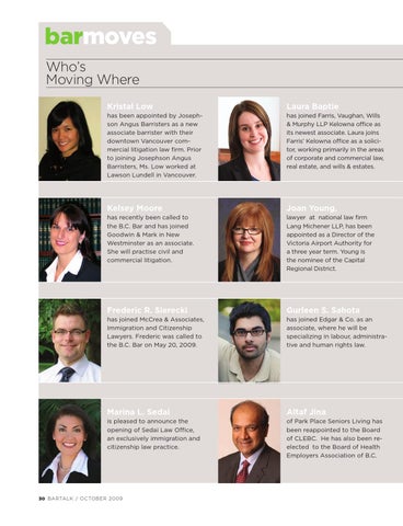 has been appointed by Josephson Angus Barristers as a new associate barrister with their downtown Vancouver commercial litigation law firm. Prior to joining Josephson Angus Barristers, Ms. Low worked at Lawson Lundell in Vancouver.