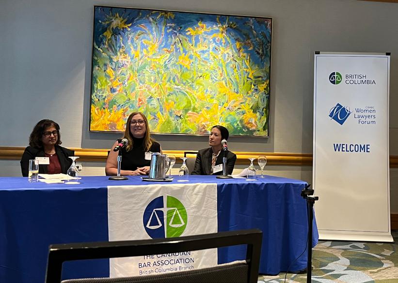 Sonali spoke about her journey with the National Committee on Accreditation process, which included articling in Smithers, and her passion for A2J. She challenged attendees to think of law differently –for example, as a ‘gig’ or with ‘unbundled’ legal services – and not to be afraid to share information. Erica brought another unique perspective with her experience as a freelance legal researcher, starting her own firm, and how often the path we end up taking looks very different than the one we may have planned. Joyce spoke about the importance of building a community for yourself, whether that comes from work, volunteering or serving on boards for charities and other not-for-profits, or seeking out like-minded peers who you can call with a question every now and then.
