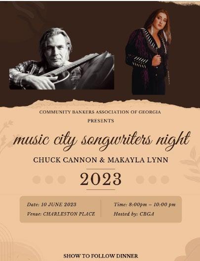 the latest 2 A Few Thoughts About Community Banking 3 Helping Small Businesses–What It Means to be a Community Bank 5 Topgolf Winners 9 Fall Clay Shoots/Town Hall Talks 11 Advocacy T-Shirts Highlights 13 CONNECT Agenda, Speakers Entertainment and more! 21 Georgia’s Newest Bank Celebrates One Year Anniversary. 26 CBA Launches New Website 27 Scholarship Winners stay connected @company/ cbaofgeorgia @CBAofGeorgia @CBAGeorgia professional development spotlights member services The place to be… CBA CONNECT, June 7-11, 2023, Charleston Place pg. 13