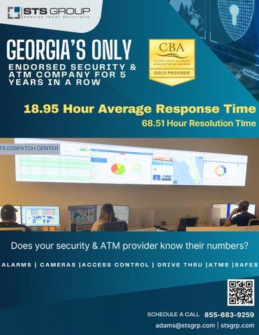 2 CBA CONNECT A Homecoming 3 L.E.A.D. - Develop Our Members 4 TopGolf Highlights 6 ICBA Capital Summit Highlights 8 Upcoming 2024 Advocacy Events 10 2024 Clay Shoots 12 2024 Legislative Session Wrap-Up 16 CONNECT 2024 Where Banking Meets Brilliance 20 LEAD - Leadership Education Advocacy Development 21 An Interview with Mike Underwood, Senior Vice President, Commercial Lending Peach State Bank, LEAD Division Chair 23 LEAD Board 24 LEAD Board Visits the Federal Reserve Bank of Atlanta 26 2024 CBA Advanced BSA: AML./CFT Officer School 28 Scholarship Winners 30 Beyond the Bank: Angela C. Woodard Compliance to Craftmanship CONTENTS 32 Education Buzz: The Lost Art of Handwriting 34 Upcoming Programs 35 Popular Schools and Conferences 36 Roundtable Advice for Professional Development 37 Addressing the Talent Gap 38 Cyber Risk Summit 40 LEAD On - A Community Bank Leadership Retreat for All Bankers 41 Tech Talk 42 Recession Proofing 44 Choosing a Deposit Network and Maximizing its Value for Your Bank 46 Increase Net Interest Income and Win More Deals! 48 They’re Not Bad Loans, They’re Just “Out of Favor” 49 Summer & Fall Sponsorship Oportunities 51 CBA’s 2024 Preferred Service Providers Community Bankers Association of Georgia 1640 Powers Ferry Road SE, Building 28, Suite 100, Marietta, GA 30067-1425 (770) 541-4490 or (800) 648-8215 • Fax (770) 541-4496 | www.cbaofga.com • cba@cbaofga.com