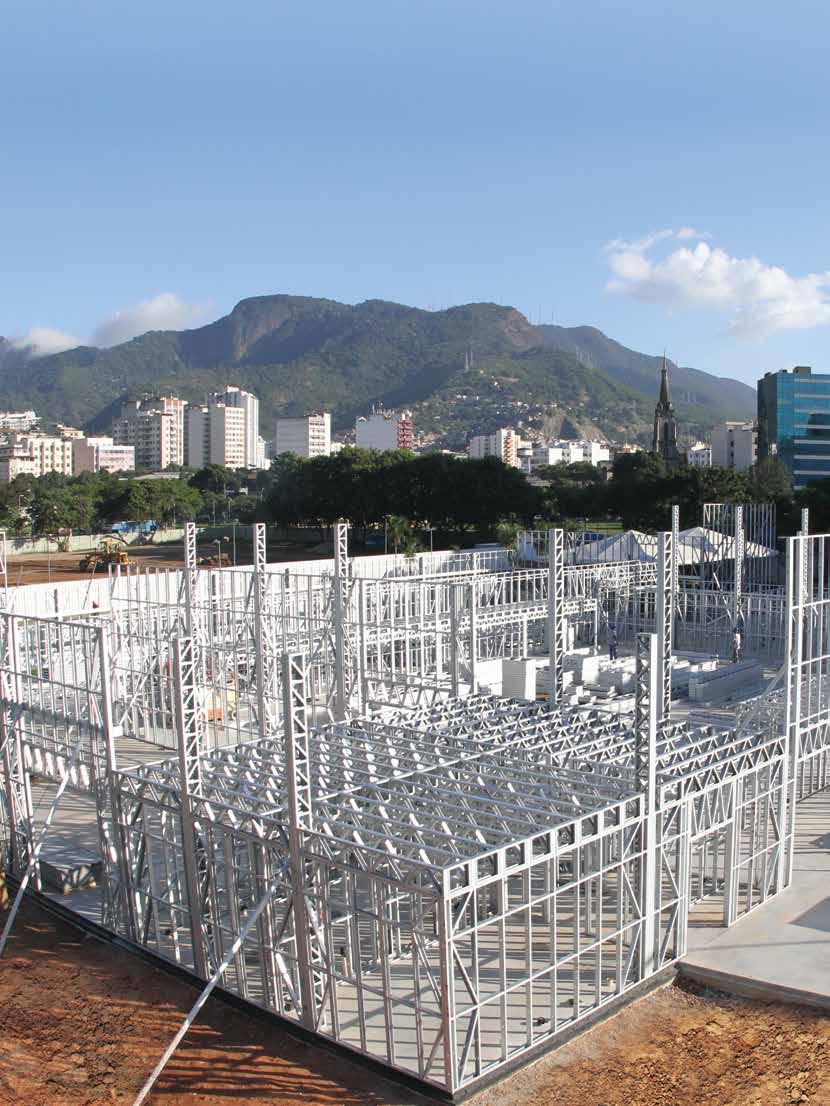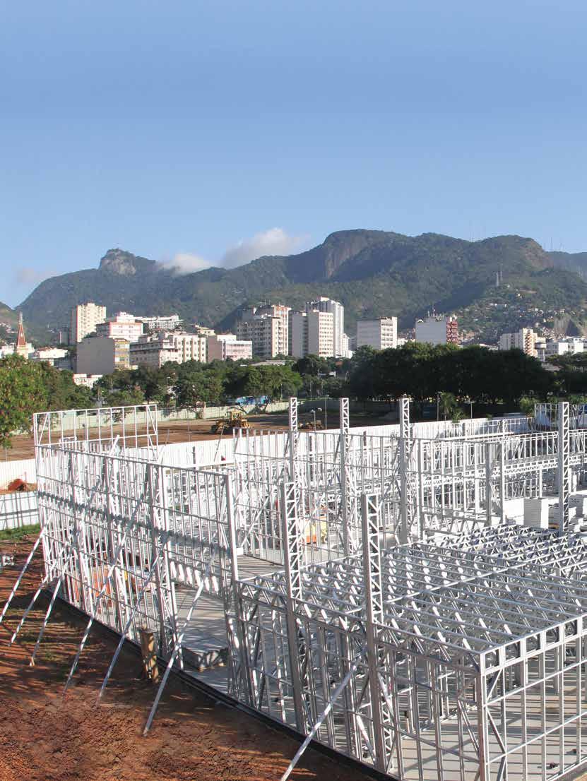 04. Pavilhão da Cidade Olímpica, RJ: inspirada na arquitetura de Oscar Niemeyer, obra é realizada em apenas dois meses 08. Instituto Dona Ana Rosa, Vila Sônia, SP: projeto em light steel framing permite que sede da instituição seja, futuramente, desmontada e reconstruída em outro endereço 12. Resort Cana Brava, Ilhéus, BA: empreendimento hoteleiro de quatro pavimentos foi construído em 35 dias com perfis leves de aço 14. Proinfância, Região Norte: solução industrializada em light steel framing garante qualidade e menor custo à construção de creches públicas no Norte do país 16. Centro Internacional de Transmissão, Barra da Tijuca, RJ: instalação recebe fechamentos em light steel framing para facilitar a transformação do espaço após o Rio 2016 18. Unidades Municipais de Educação Infantil, Belo Horizonte, MG: operação bem planejada adota sistema industrializado para expandir e garantir qualidade à rede de escolas públicas em Belo Horizonte 25. Complexo Viário, Brasília, DF: paredes de túnel e mergulhões são revitalizadas com solução em light steel framing 26. Soluções modulares: Casa Chassi e vestiário da ArcellorMittal Tubarão são entregues semiprontos no canteiro de obras 30. Condomínio Terrara, Porto Alegre, RS: conjunto residencial consegue grande redução de custos e prazo de entrega com inovadora solução de sótãos industrializados em light steel framing 32. Vila dos Atletas, Moçambique, África: projetado para os Jogos Pan-Africanos de 2011, conjunto habitacional teve estruturas montadas em apenas oito meses
