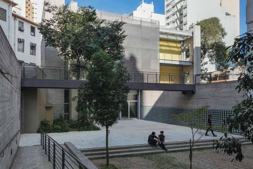 O RETROFIT NO CONJUNTO de edifícios históricos do Centro Universitário Maria Antônia, em São Paulo, tinha a missão de requalificar construções com diferentes níveis de degradação, possibilitando novos usos para os espaços. O aço foi empregado de forma marcante em elementos estruturais e de fachada, cumprindo a função adicional de evidenciar as intervenções contemporâneas no complexo.