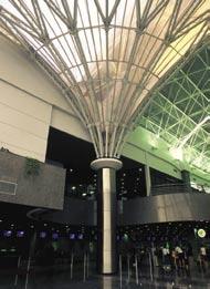 Pilares e vigas tubulares suportam a cobertura curva do módulo das plataformas.