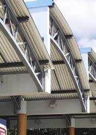 I. A estrutura da cobertura e fechamento das plataformas é feita em pórticos de aço fixados às vigas I longitudinais de 34,00 m.
