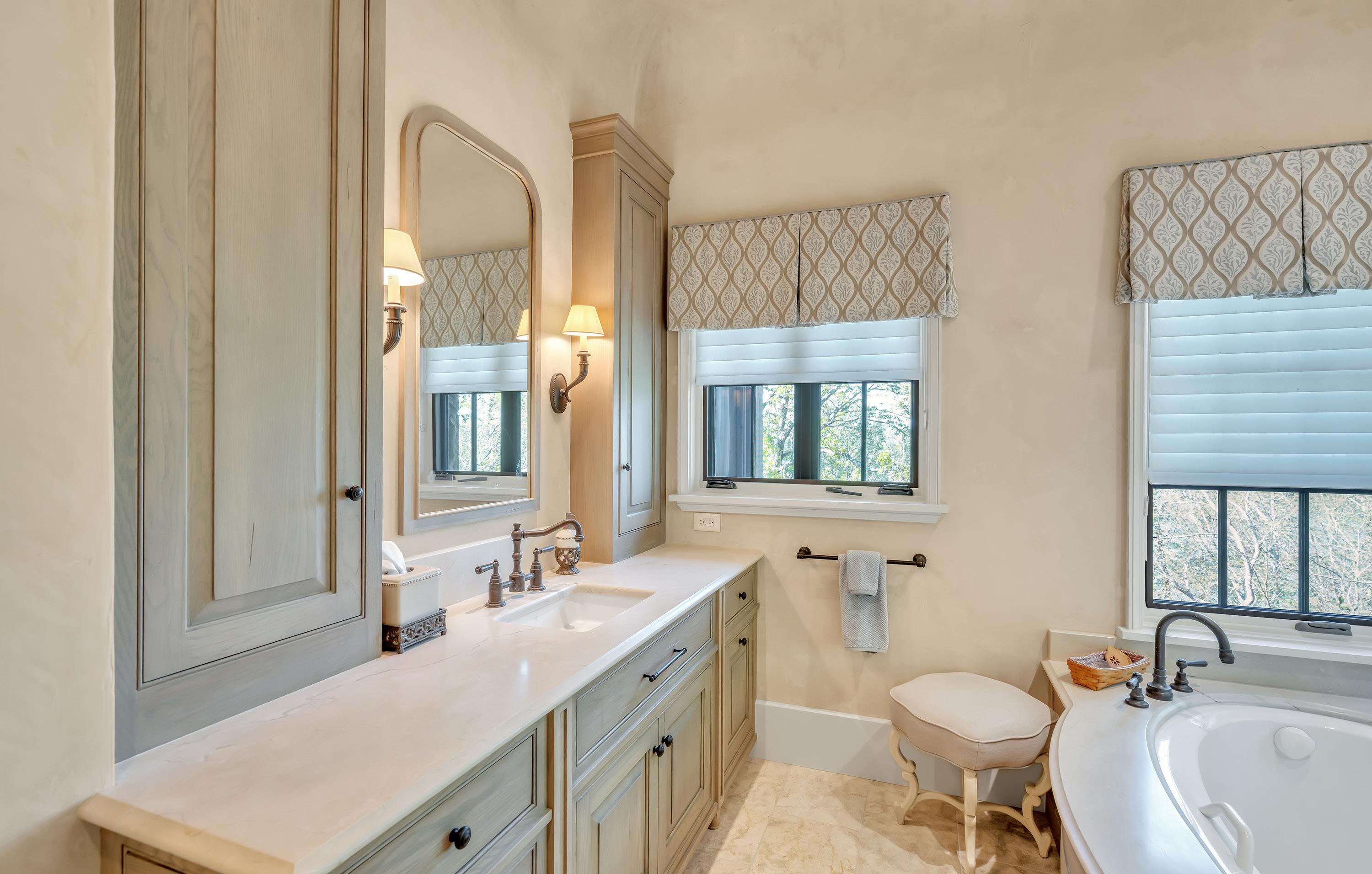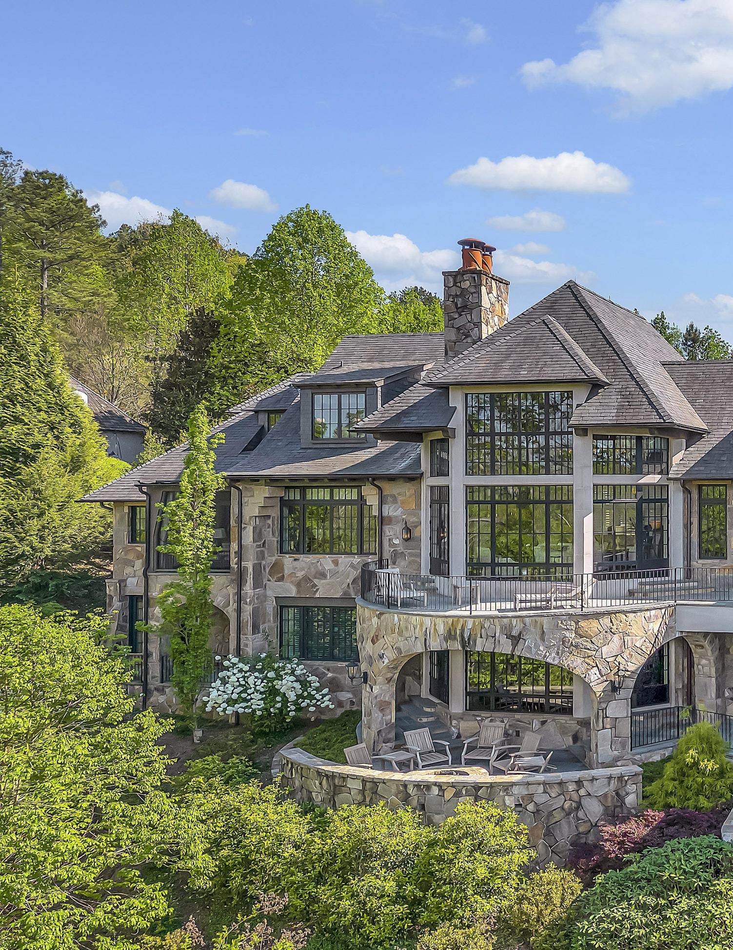 The interior was thoughtfully curated by ID Studios Interiors in Greenville, with the landscape shaped by Barry Cosgrove Landscaping.