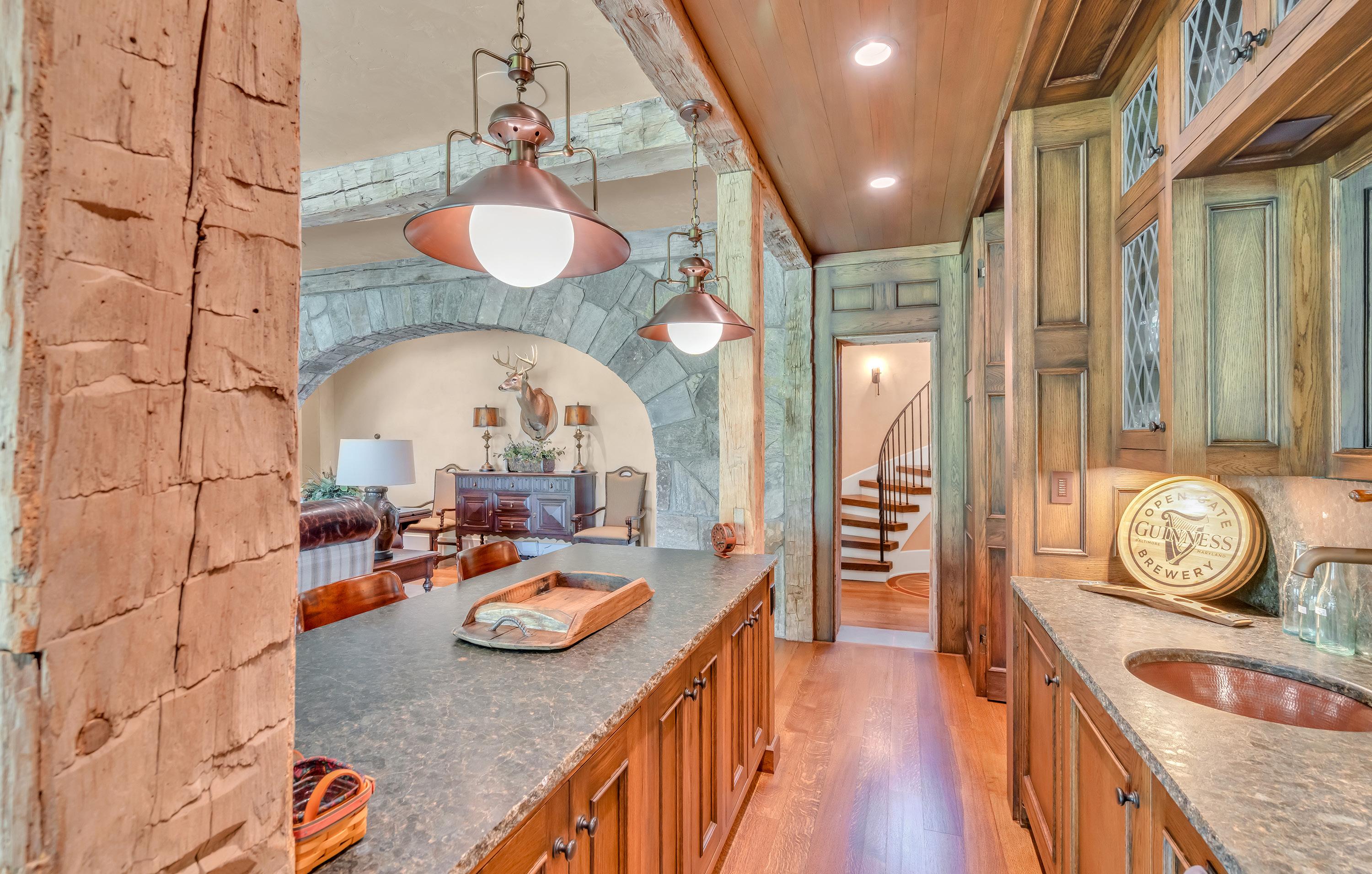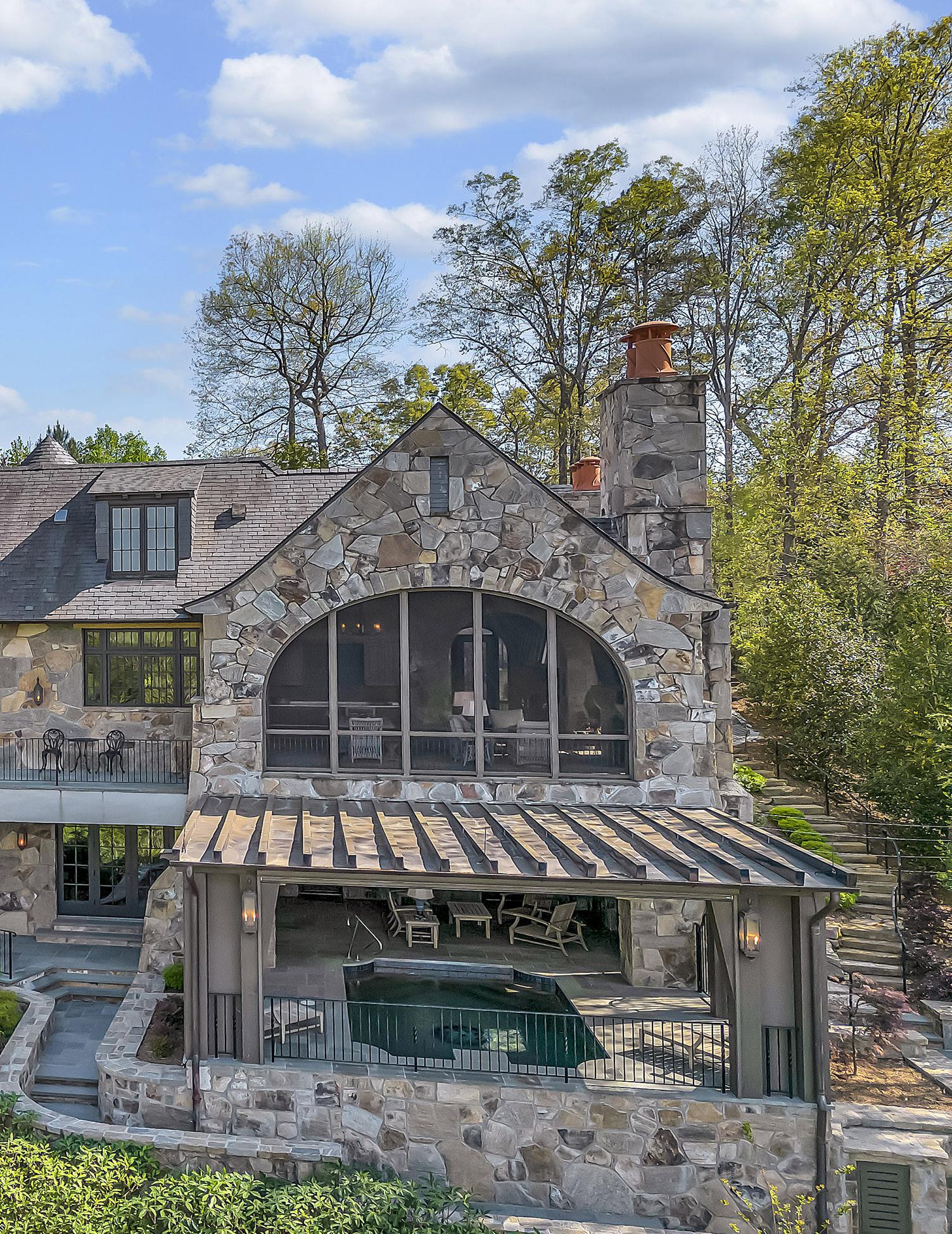 The lower level is built for entertainment with a curved wine cellar under the spiral staircase, English pub style den and billiards room, and covered heated swimming pool installed in 2019 with a full bathroom to rinse off just steps away.