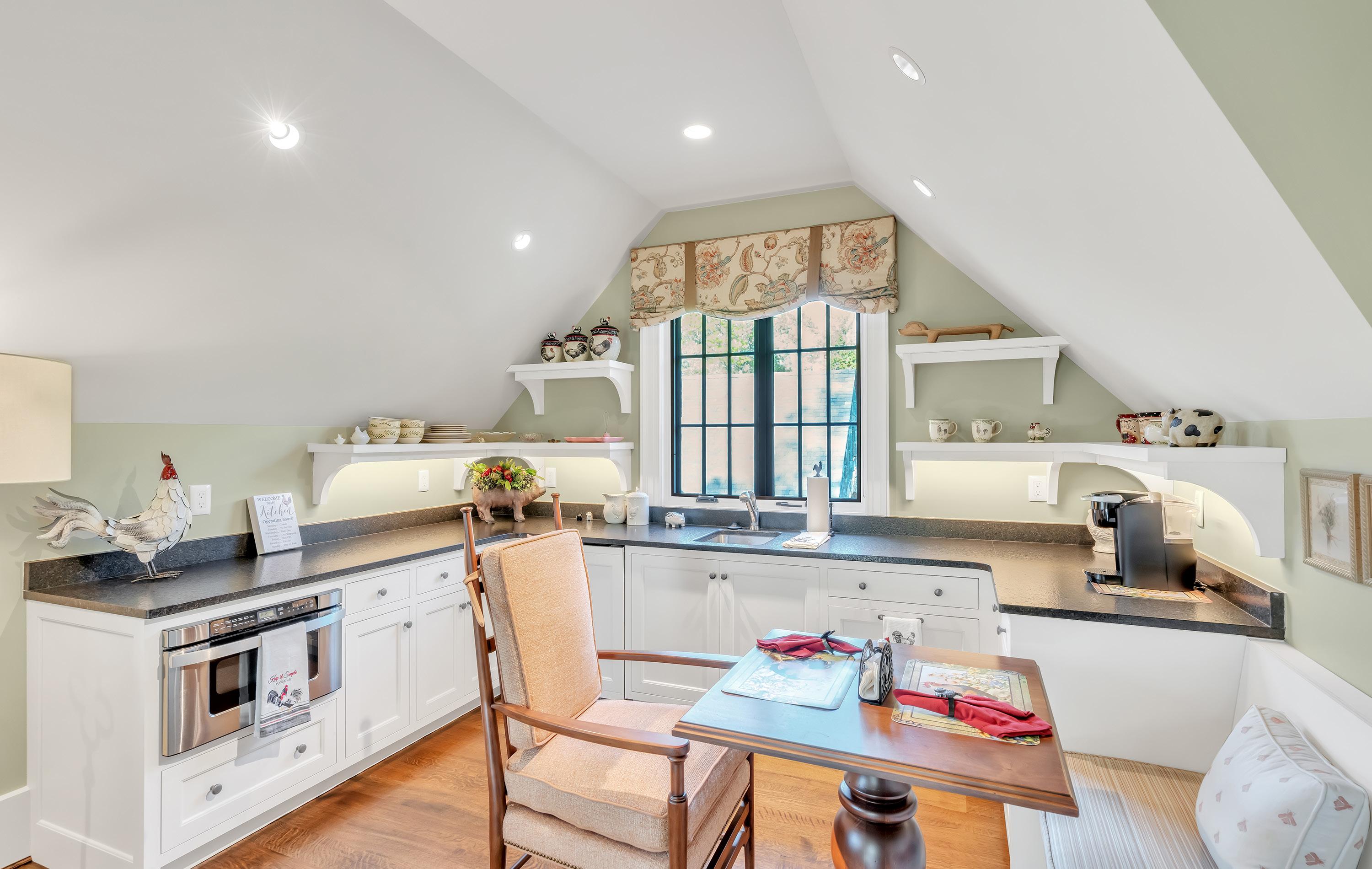 Designed by Brad Wright and built by Morgan-Keefe Builders, this home is arranged to provide special pockets of grandeur to its residents with features like a screened in porch with fireplace, outdoor kitchen, and dining all in one place—the best room in the home—and sleeping porch off the primary bedroom.