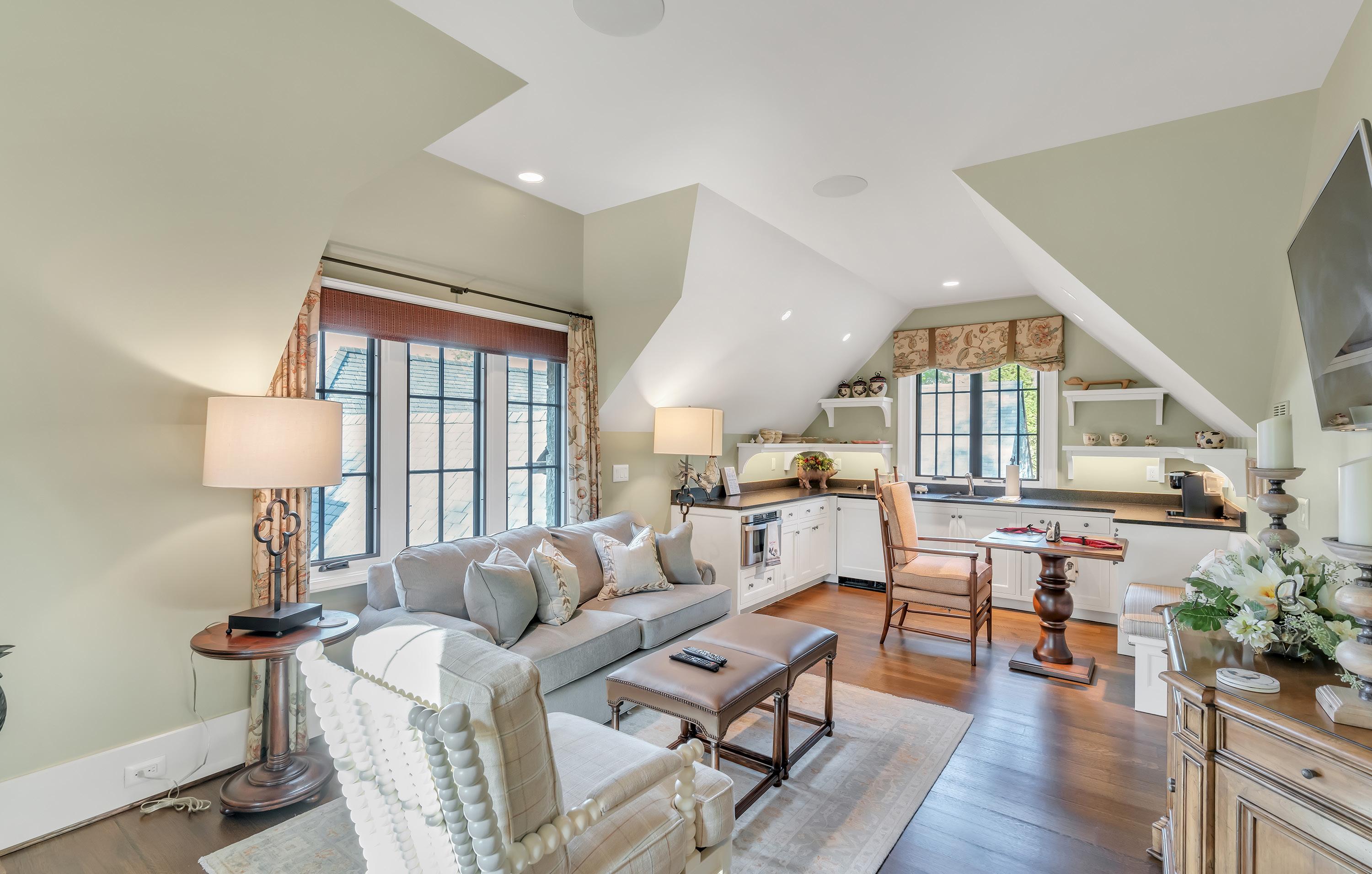 The upper level holds two rooms for office, craft, or flex space, and a carriage house apartment sits above the 3-bay garage for a caregiver or guests. The home elevator provides access to all three floors.