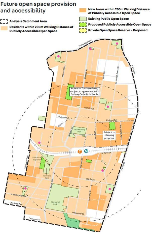 The delivery of the City and Southwest Metro services will encourage increased public transport usage by residents, workers and students and support the residential and employment growth facilitated by this Planning Proposal. Council’s adopted Complete Streets CBD Transport and Place Plan will also guide the delivery of pedestrian and cycling infrastructure improvements in the centre to support active transport.
