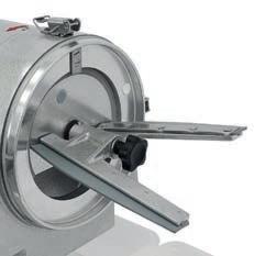 A ettatrici professionali studiate per tagliare salumi, formaggi, pane e pesce. La linea curata fin nei minimi particolari con ampi raggi e priva di spigoli permette una semplice e completa pulizia, blocco carro di scorrimento, che consente di smontare il piatto merce ed il suo supporto ed avere così un comodo accesso anche nella parte sottostante al piatto stesso; in questo caso, un apposito meccanismo di sicurezza (solo modello 300 S-L) ne permette lo smontaggio solo quando la paratia di regolazione fetta è nella posizione “0” in modo tale che la lama sia completamente protetta.