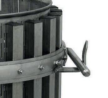 Il torchio a leva è uno strumento ideato per l’estrazione del mosto dalle vinacce. Progettato e realizzato da Polsinelli con materiali di prima qualità risponde alle esigenze produttive di aziende e appassionati di enologia. Si compone di un movimento a cricco ed una gabbia inox poggiata su un bacino e sorretta da un resistente treppiedi in metallo.