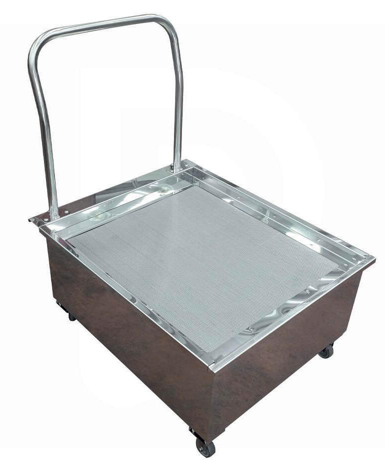 Bacino di raccolta rinforzato, realizzato in acciaio smaltato con vernici epossidiche.